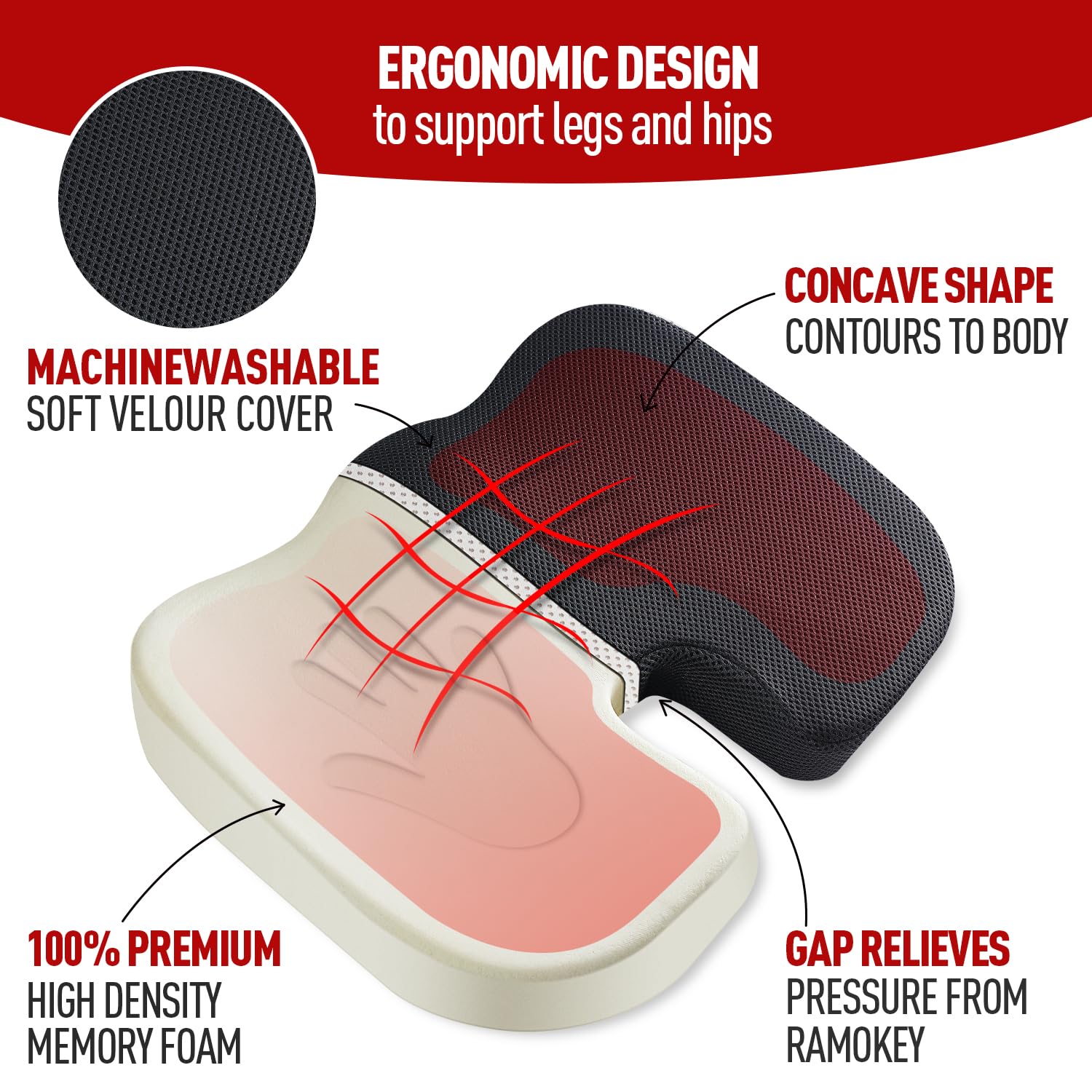 - RaMokey Seat Cushion | Office Chair Memory Foam | Coccyx Pain Relief Cushion Pillow -