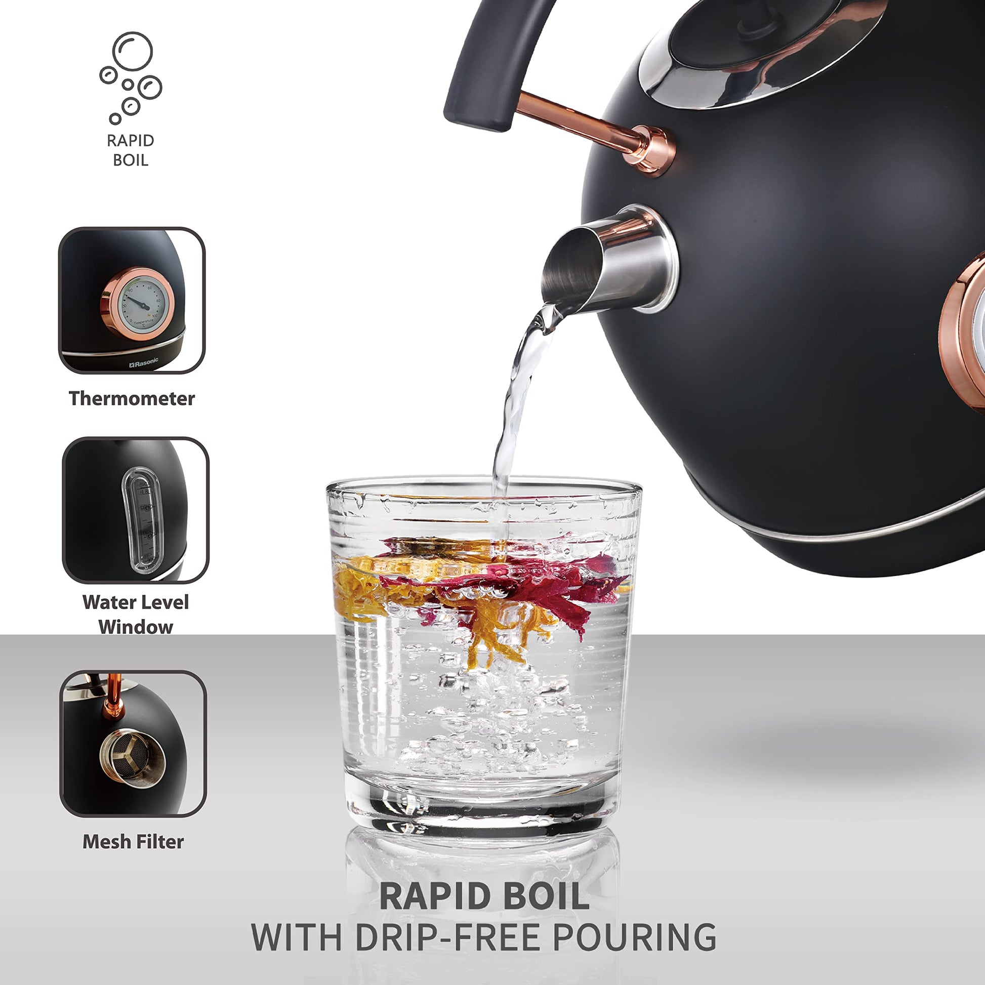 - Rasonic Classic Retro Electric Kettle | 1.8L | Stainless Steel | 3KW Fast Quiet Boiling | Matt Finish Black and Rose Gold -