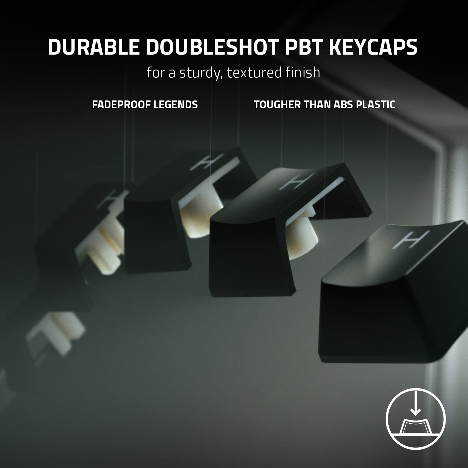 - Doubleshot PBT Keycaps – Durable and textured keycaps made from hard PBT plastic that won’t wear down, with labels that won’t fade, thanks to their doubleshot molding process.