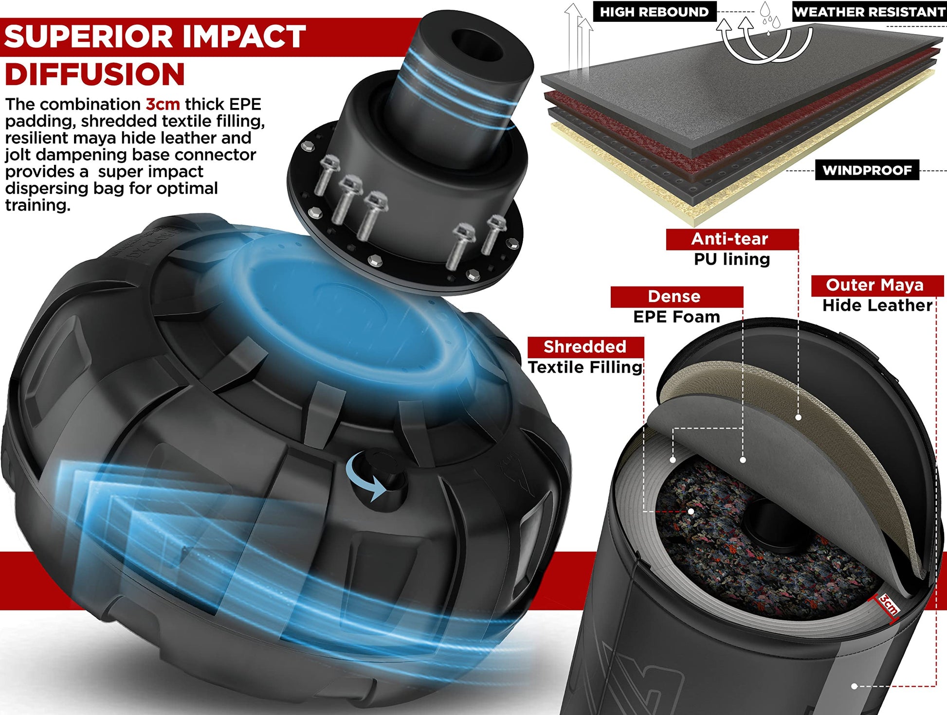 - Thick Absolute Impact Diffusion Foam: EPE foam layers absorb high-intensity impacts, keeping the bag in shape and providing a solid, firm punching surface.