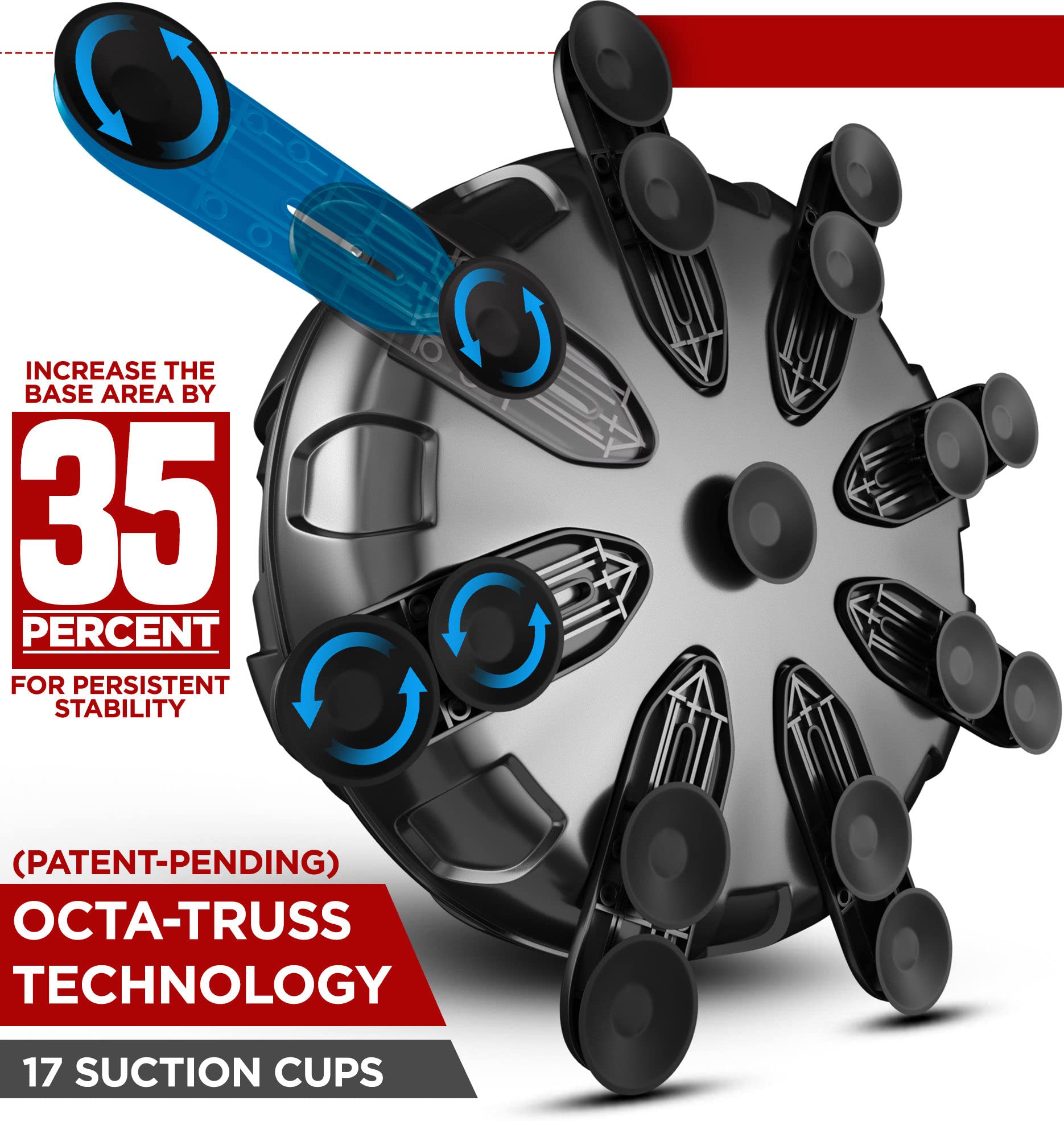 - Patented Octa Truss Suction Base: Revolutionary base design with 8 extended legs and 16 suction cups, ensuring superior stability, support, and firmness on smooth surfaces.