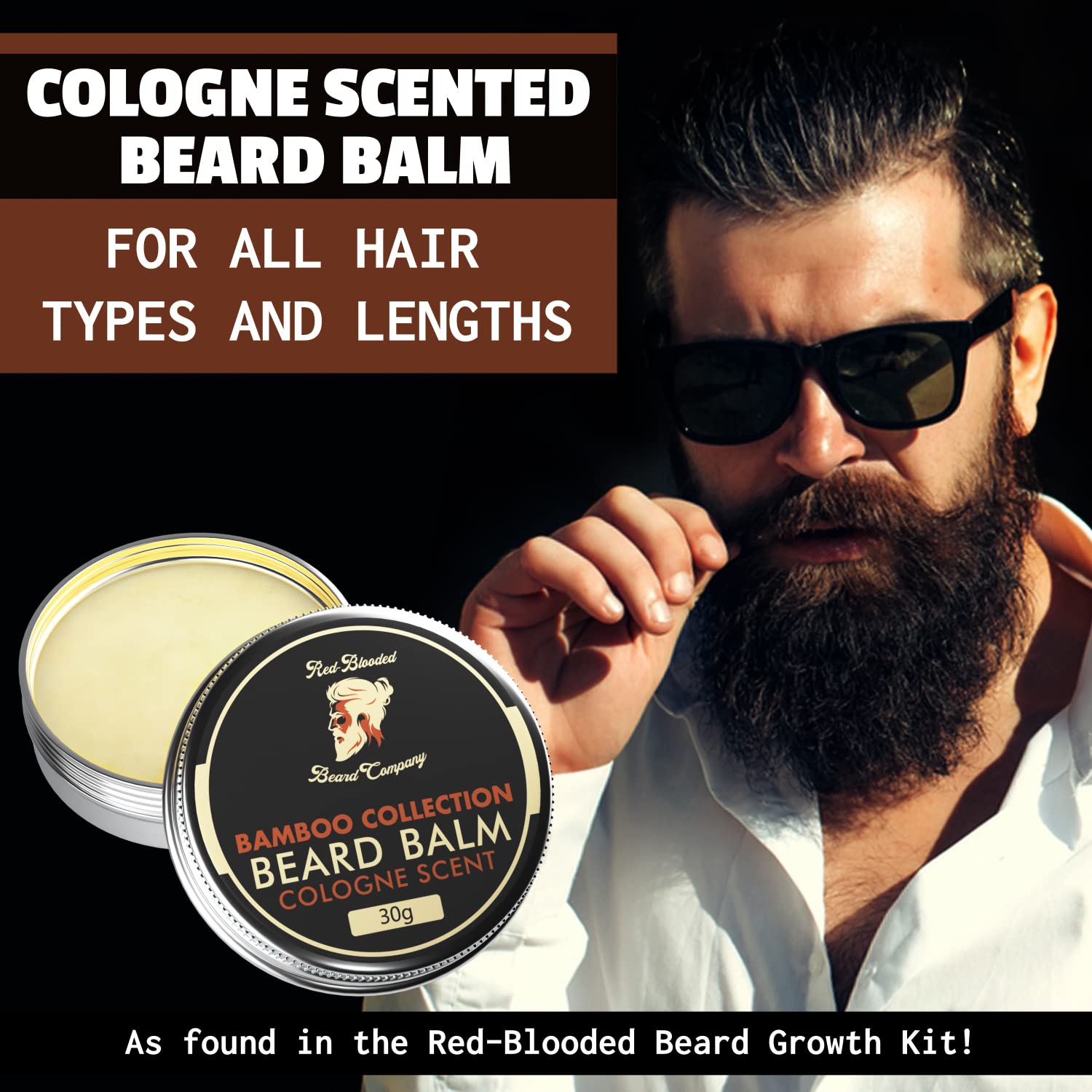 - Red-Blooded Beard Balm For Men | Cologne Scent With Organic Jojoba Oil -