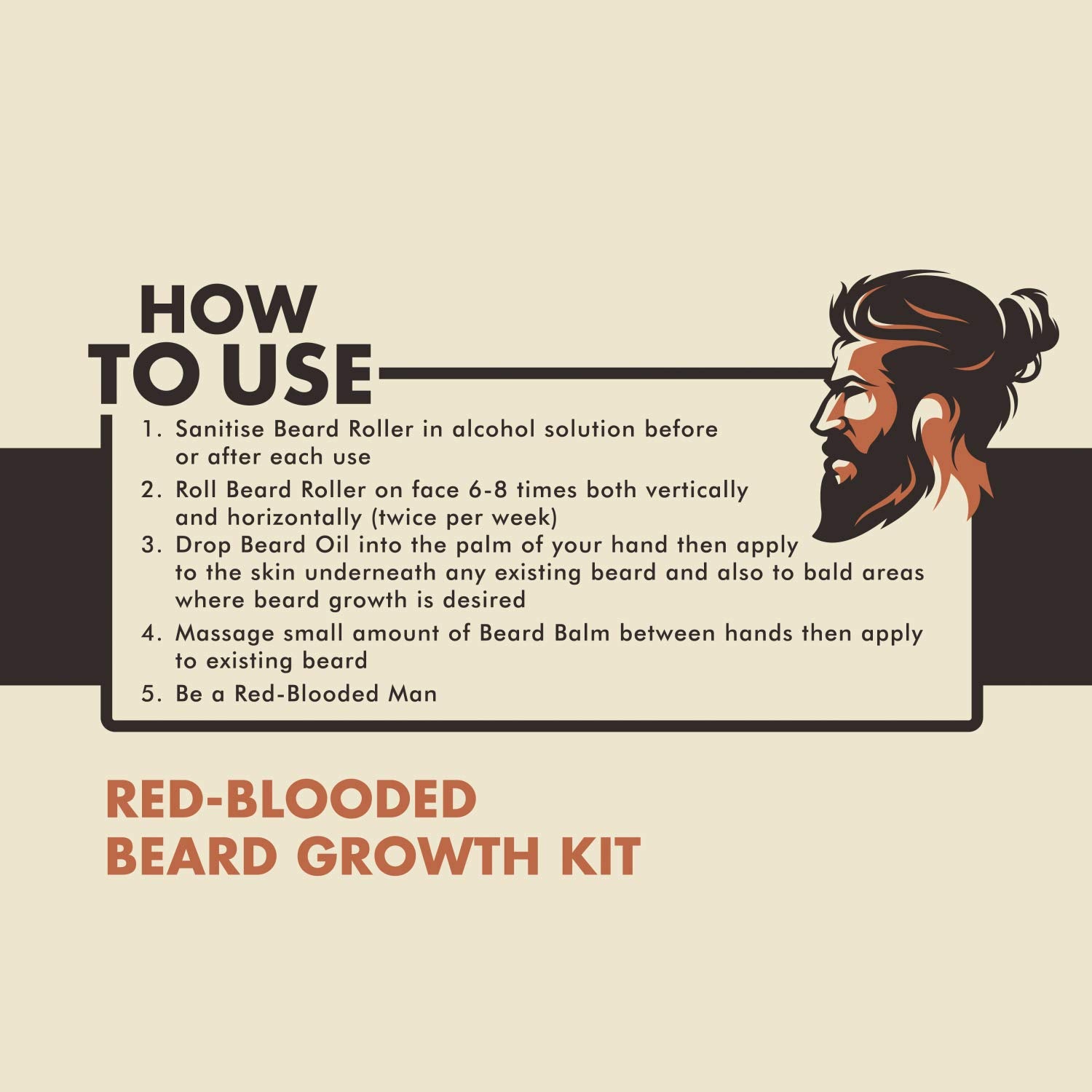 - Red-Blooded Beard Growth Kit | Beard Roller + Beard Oil + Beard Balm -