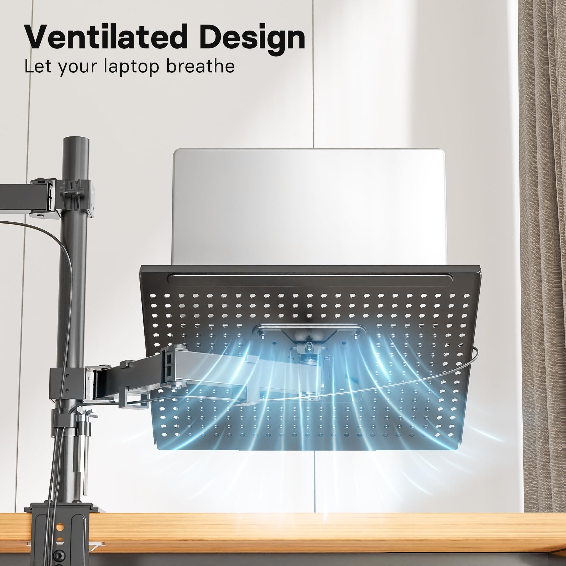 - Full-Motion Adjustability: Tilt, swivel, and rotate the monitor and laptop to achieve the perfect viewing angle. The arm can be adjusted up to 420mm in height for ultimate flexibility and comfort.