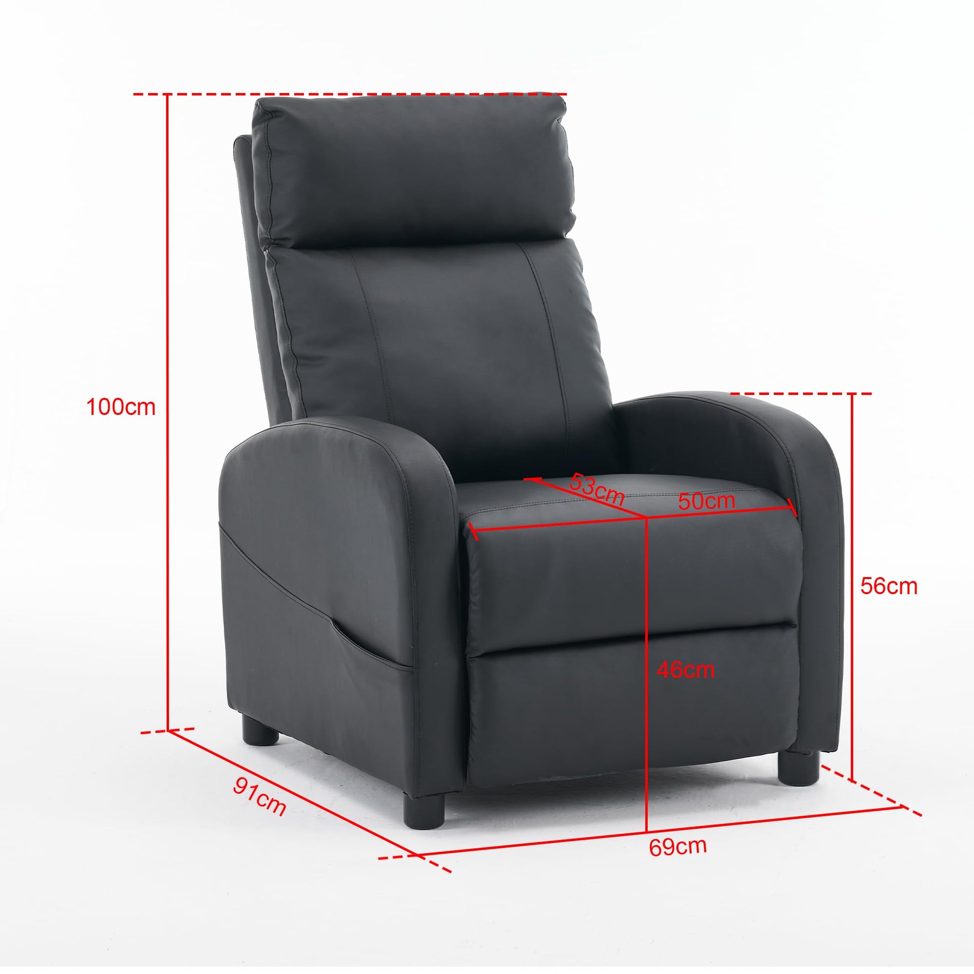 - Requena Recliner Armchair | PU Leather | Sofa Lounge With Leg Rest and Reclining Functions | Black -