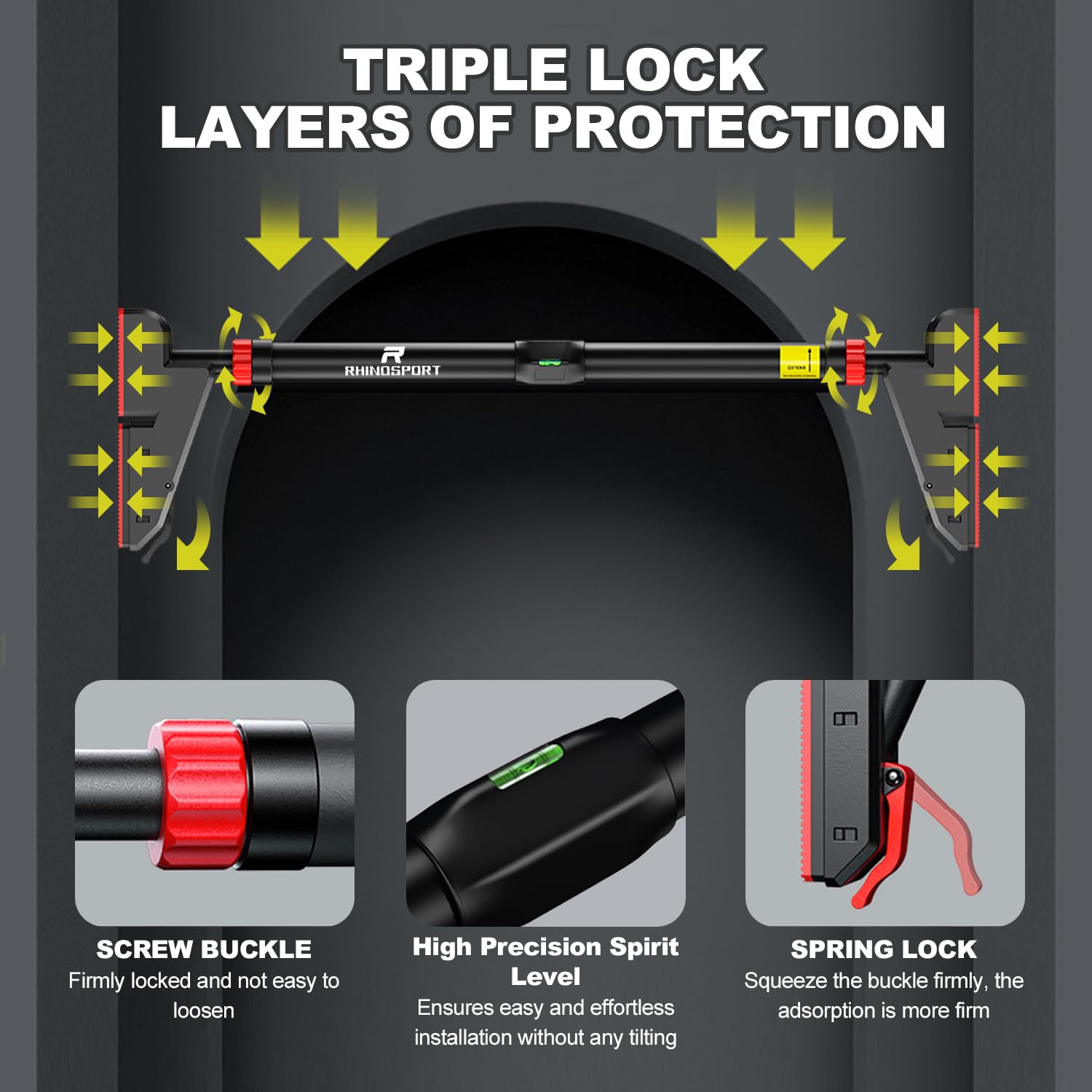- No Marks Left on Doors: With a high-precision spirit level, the bar is easy to install, fits most door frames, and protects your door from cracking thanks to the soft anti-skid PVC material.