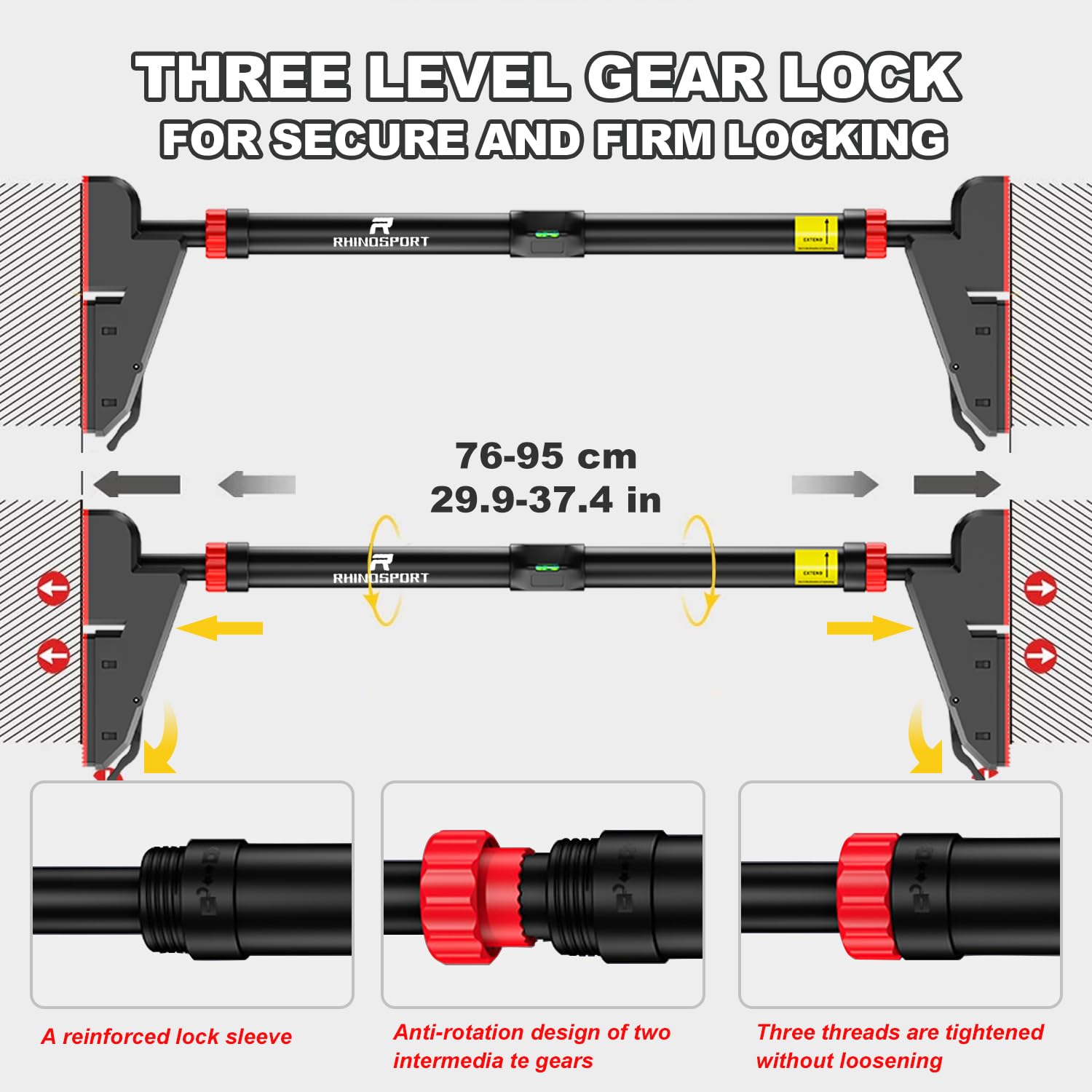 - RHINOSPORT Door Pull Up Bar |Chin Up Bar from 76-95 cm (29.9in-37.4in) | Load Bearing 881LBS -