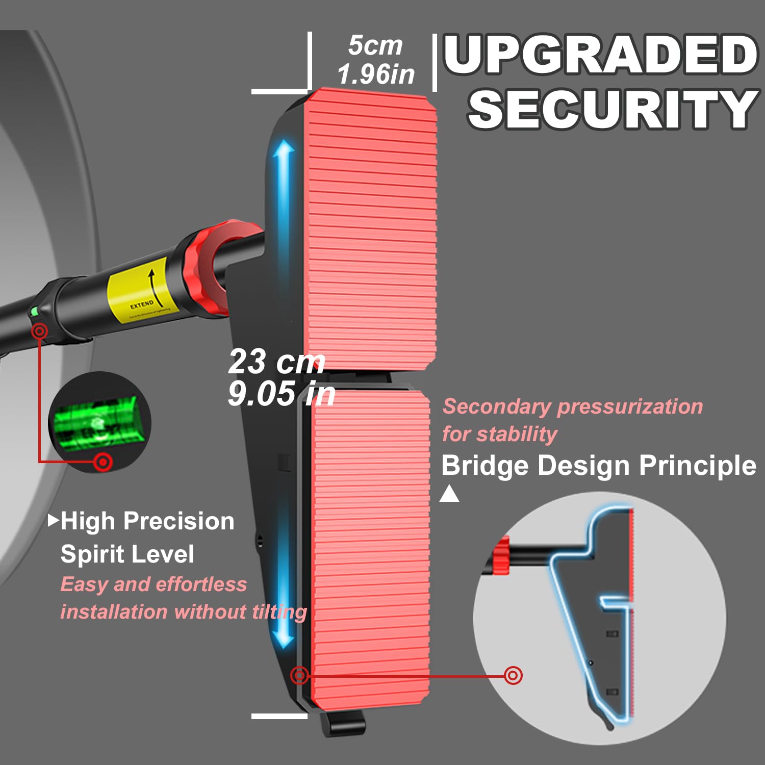 - Upgraded Security: Featuring a scientific bridge design and secondary pressurization for added stability, this pull-up bar supports up to 880 lbs when installed correctly. For your safety, stop extending the bars when you see the exclamation mark sign.