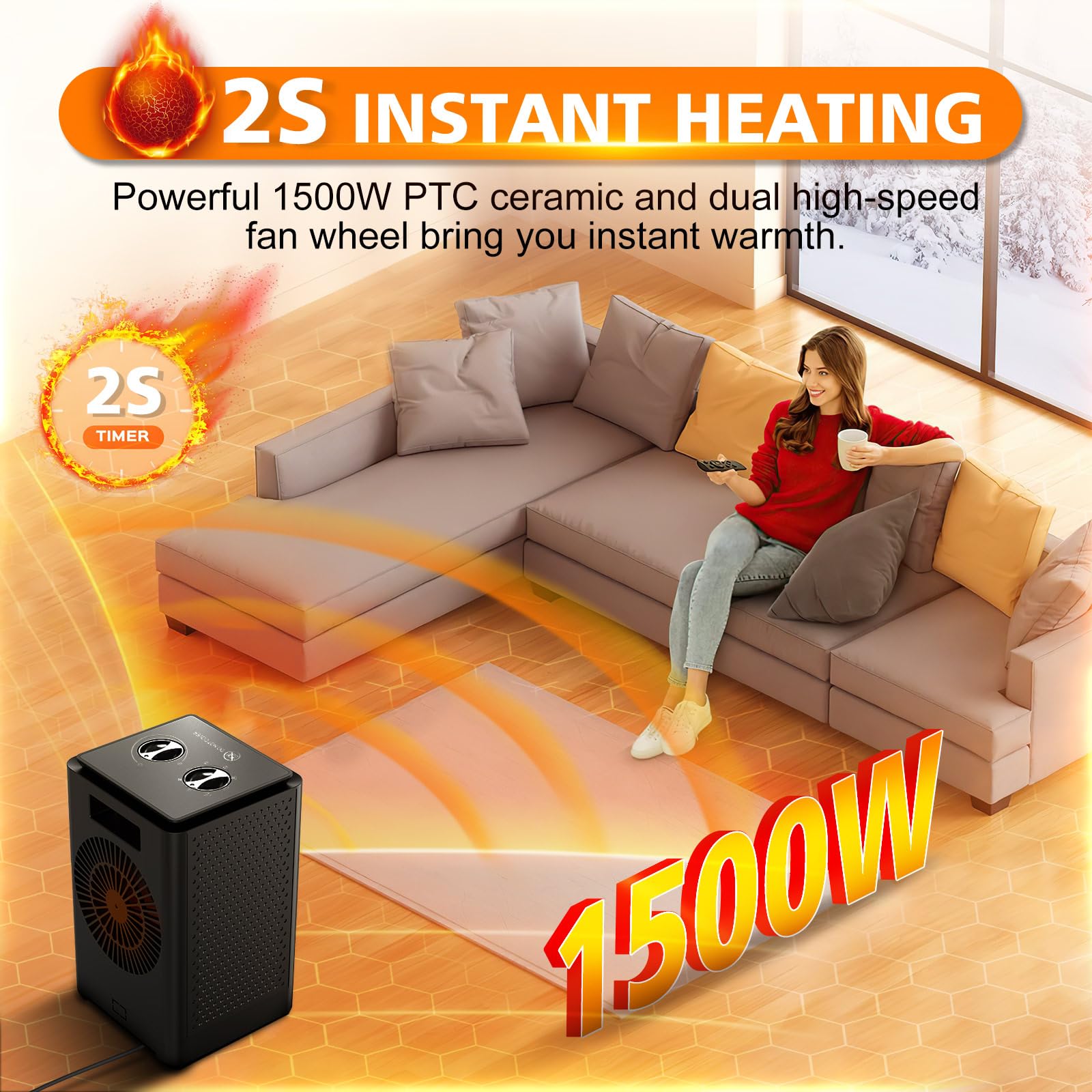 - Energy-Efficient Heating: The PTC ceramic heating tech and high-speed fan deliver rapid warmth to areas up to 200 square feet, making it ideal for smaller spaces. This helps save on electric bills by heating only the areas you need.