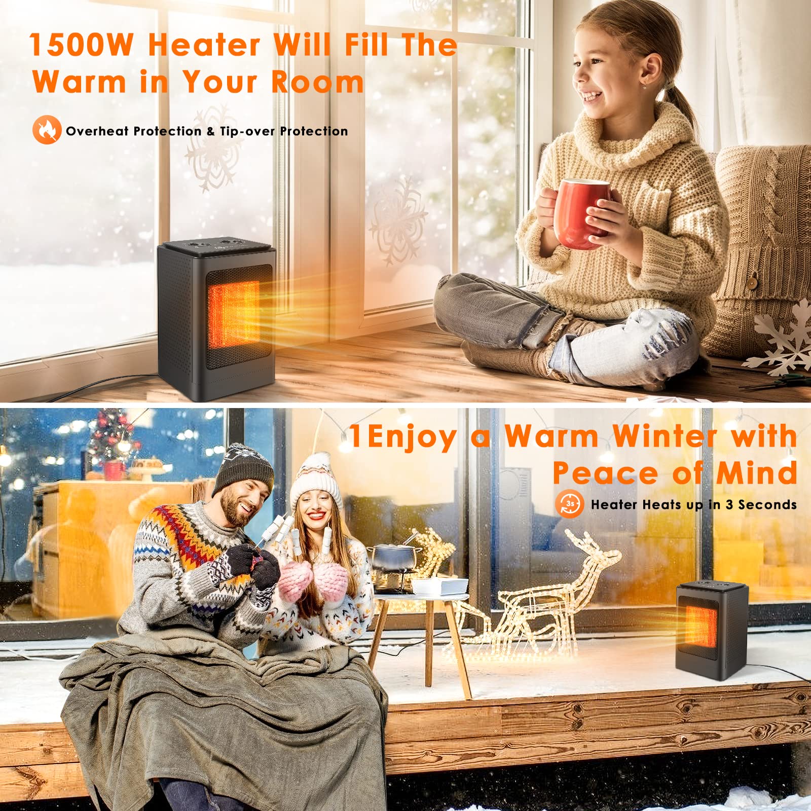 - Portable Space Heater | Fan Heaters for Home Low Energy Silent | 750W / 1500W -