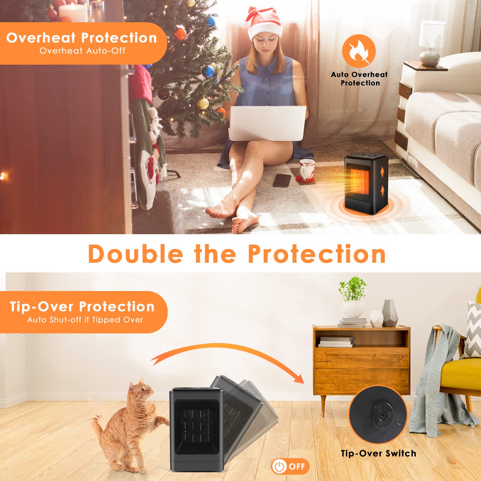 - Tip-Over & Overheat Protection: The automatic overheat protection system shuts off the heater if it gets too hot, preventing any accidents. The tip-over protection feature ensures safety by automatically turning the heater off if knocked over.