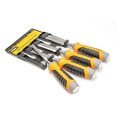 - Rolson 56135| 4pcs | CRV Wood Chisel Set | Black/Orange -