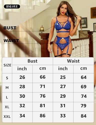 - RSLOVE Sexy Lingerie for Women | Floral Lace Bra and Panty Set | 3 Pieces | Blue -