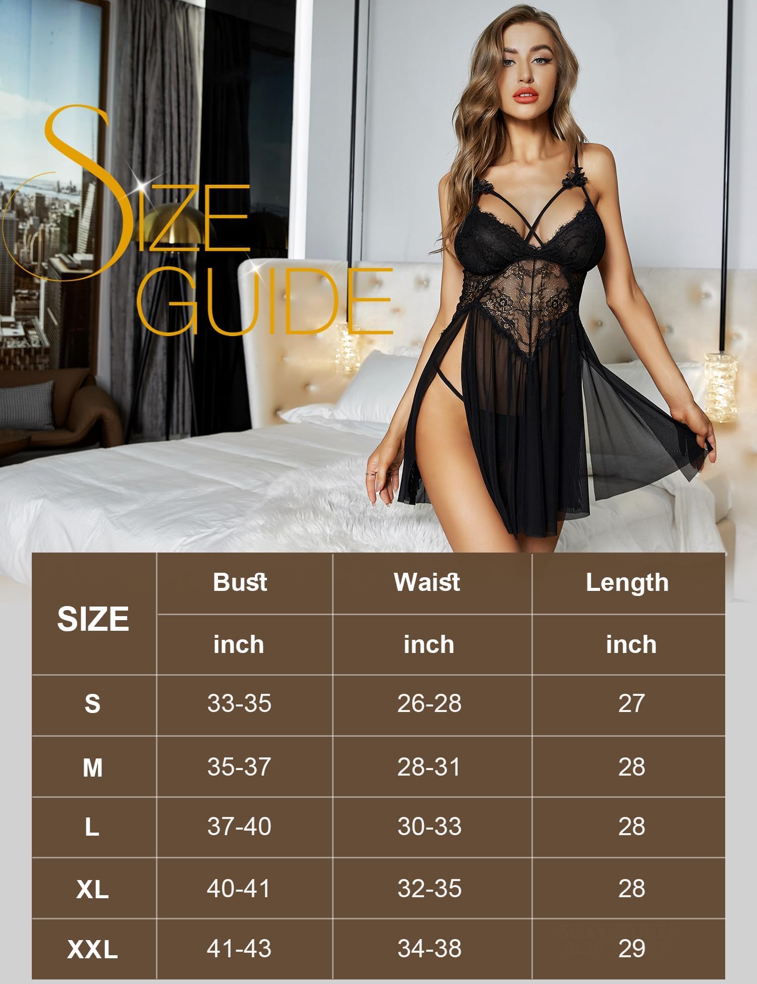 - RSLOVE Womens Sexy Babydoll Lace Nightgown Dress | Black -