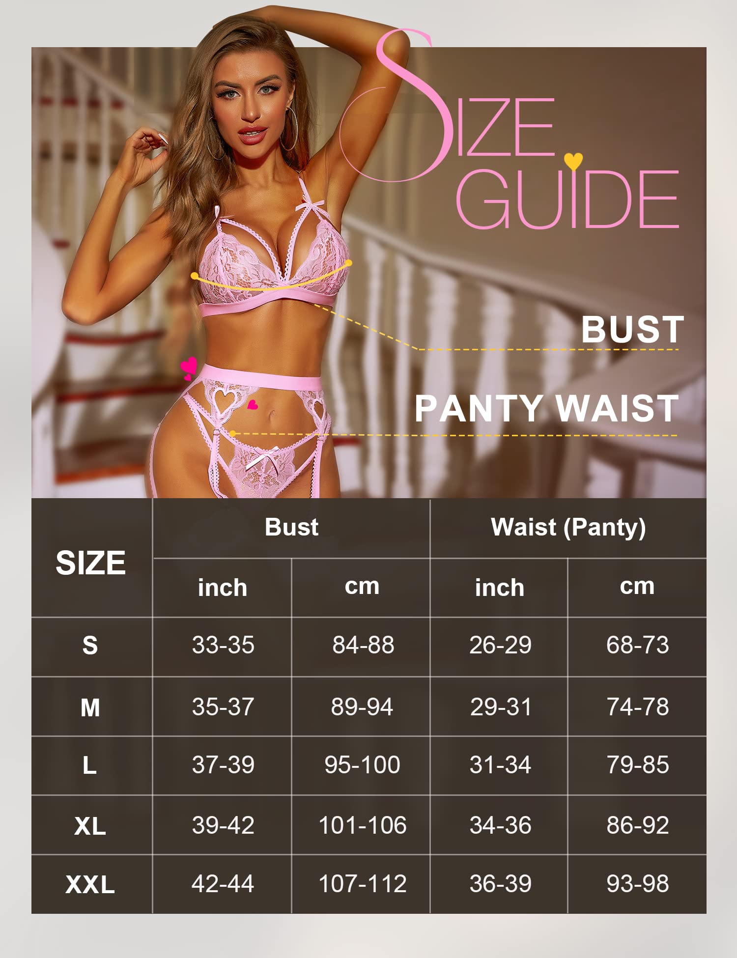 - Complete Three-Piece Set – Includes a lace garter belt, matching bra, and panty set for a sophisticated, coordinated look.