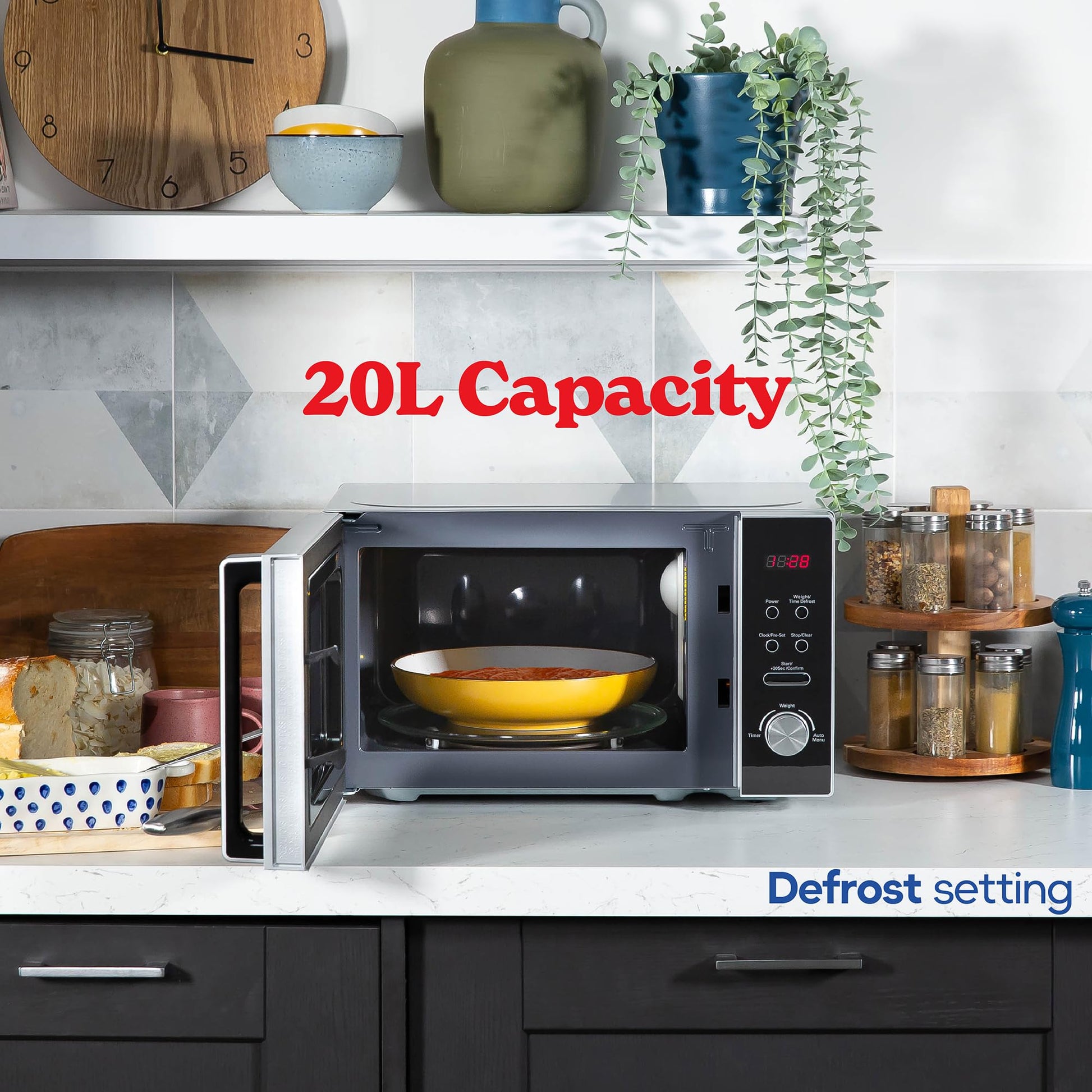 - Large Capacity: The 20-litre interior is spacious enough to fit a variety of dishes, ideal for family meals or reheating large portions.