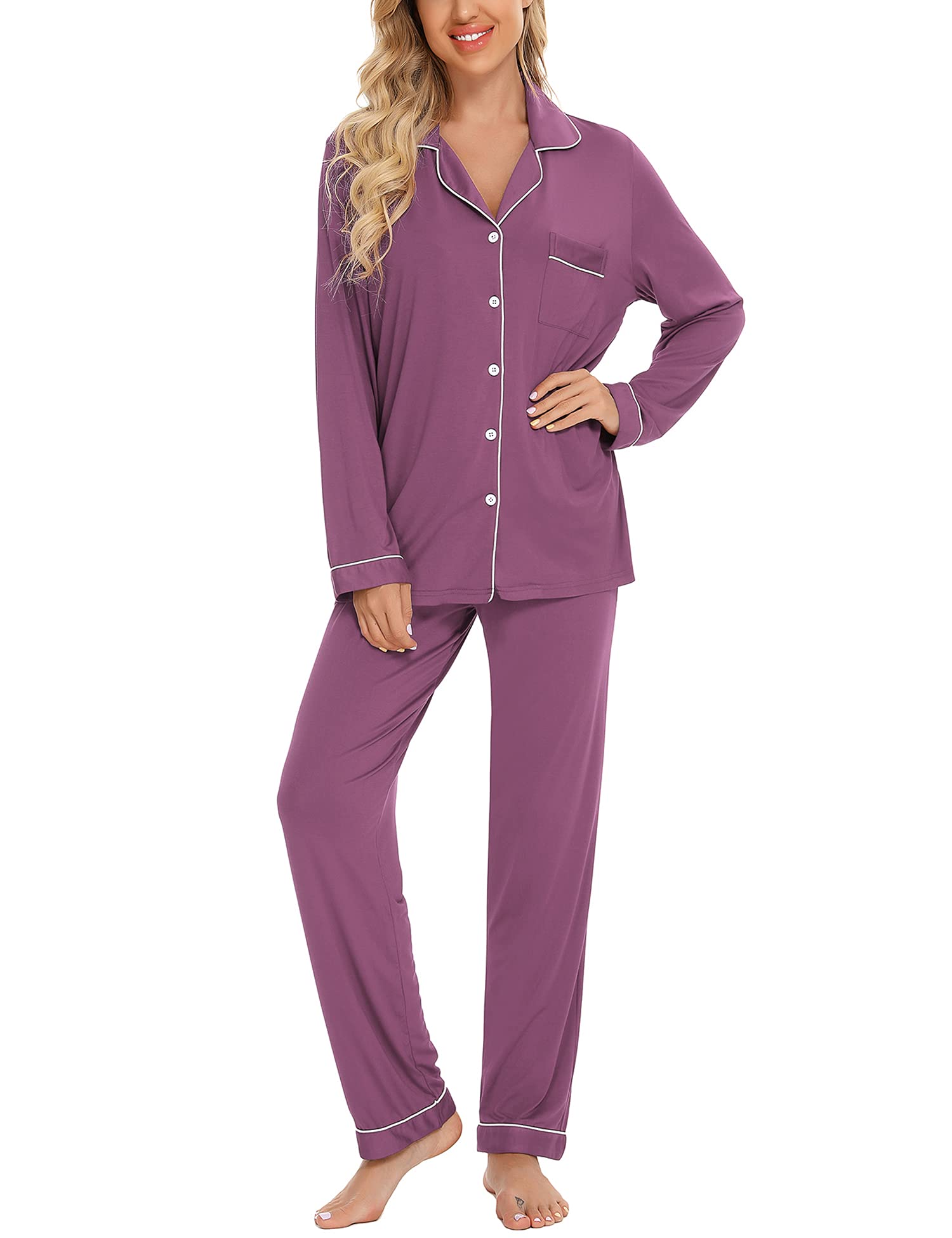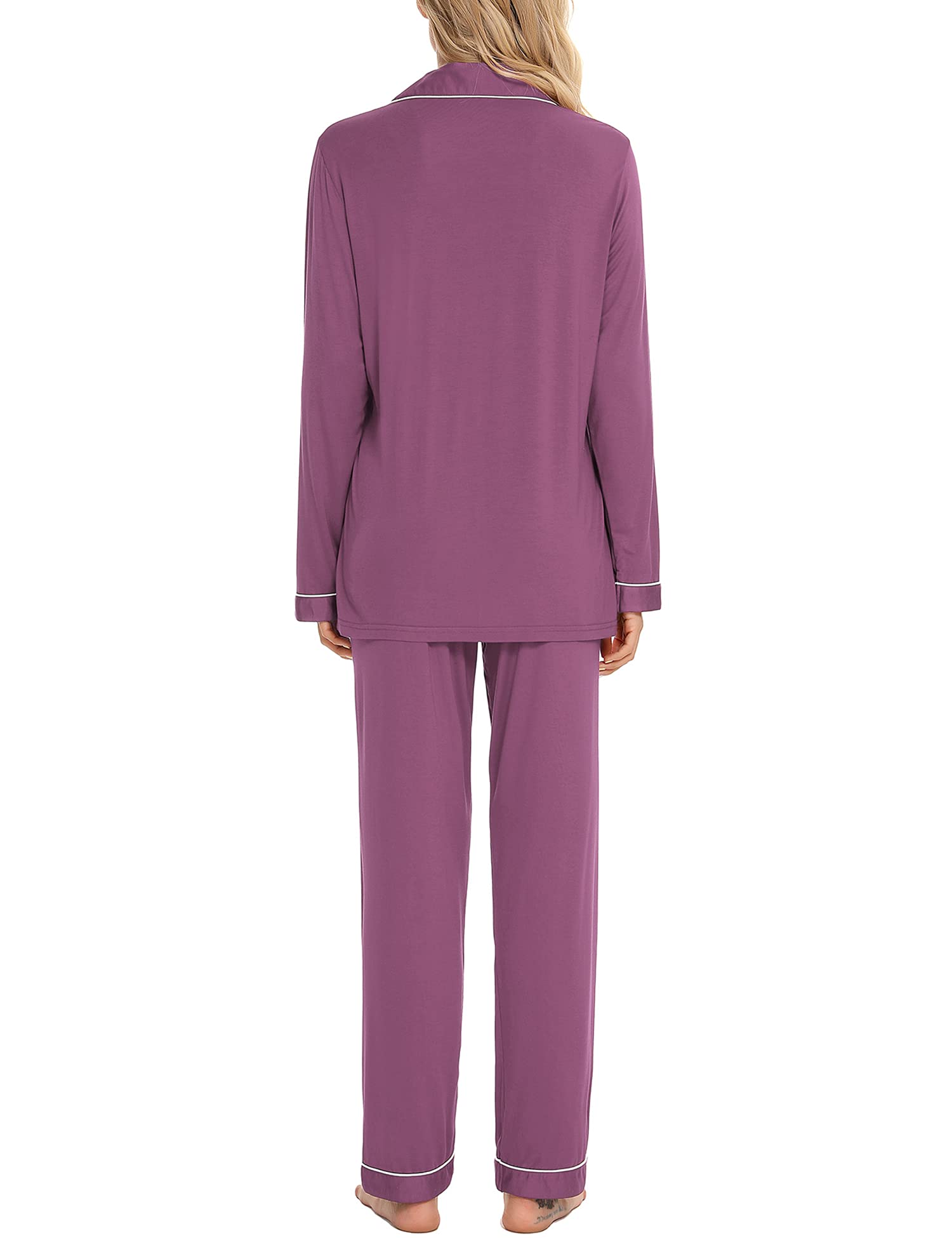 - Classic Long Sleepwear Sets: Featuring a full button-down top, this pajama set is easy to put on and take off, making it perfect for new moms or anyone who needs convenience and comfort.