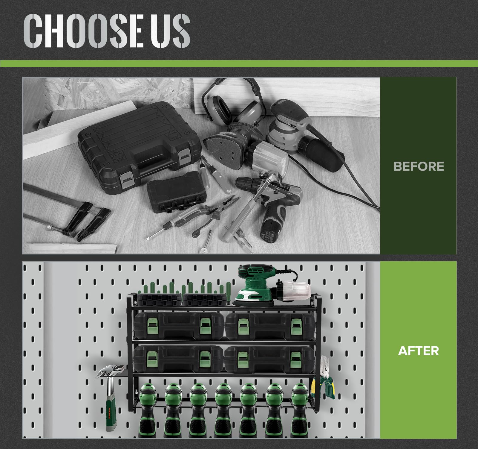 - Versatile and Durable: Perfect for holding a variety of tools, from hand tools to power tools, and built to last in both residential and commercial spaces.
