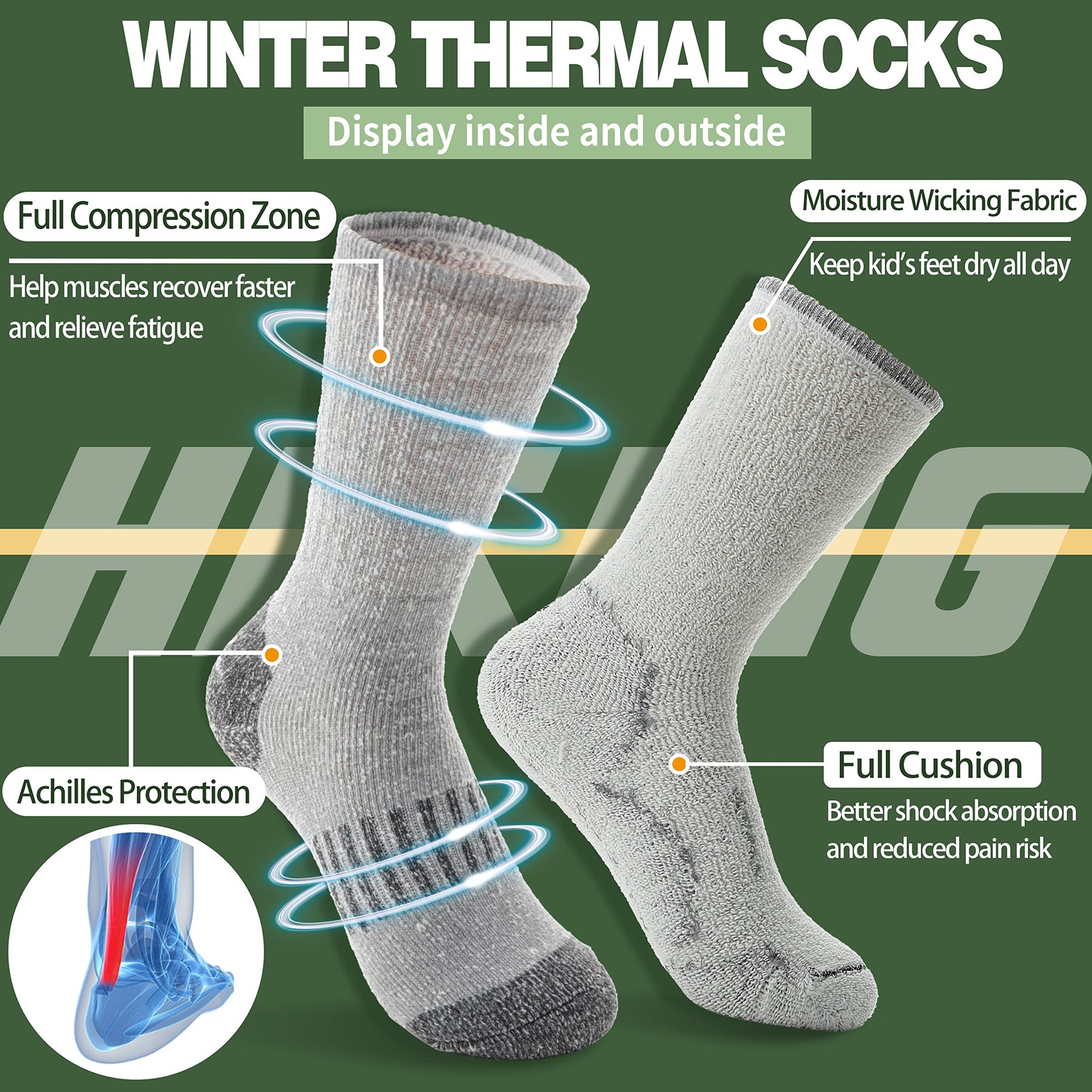 - Sandsuced Kids Merino Wool Walking Socks | Girls Boys | Winter Thermal Warm -