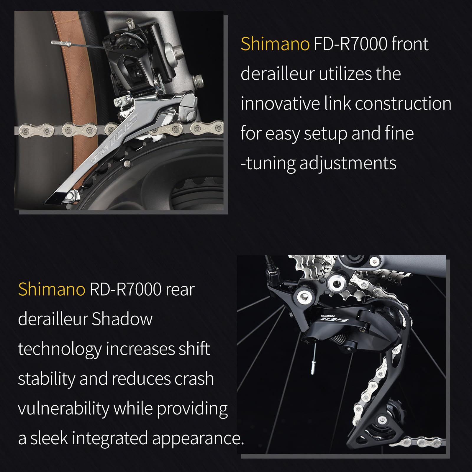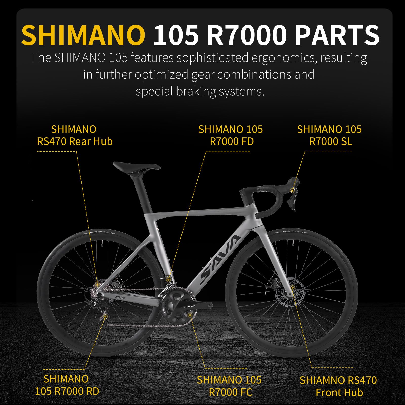 - SHIMANO 105 R7000 Drivetrain: With a 2x11-speed setup, the SHIMANO 105 R7000 groupset ensures smooth and reliable shifting, perfect for both casual rides and competitive cycling.