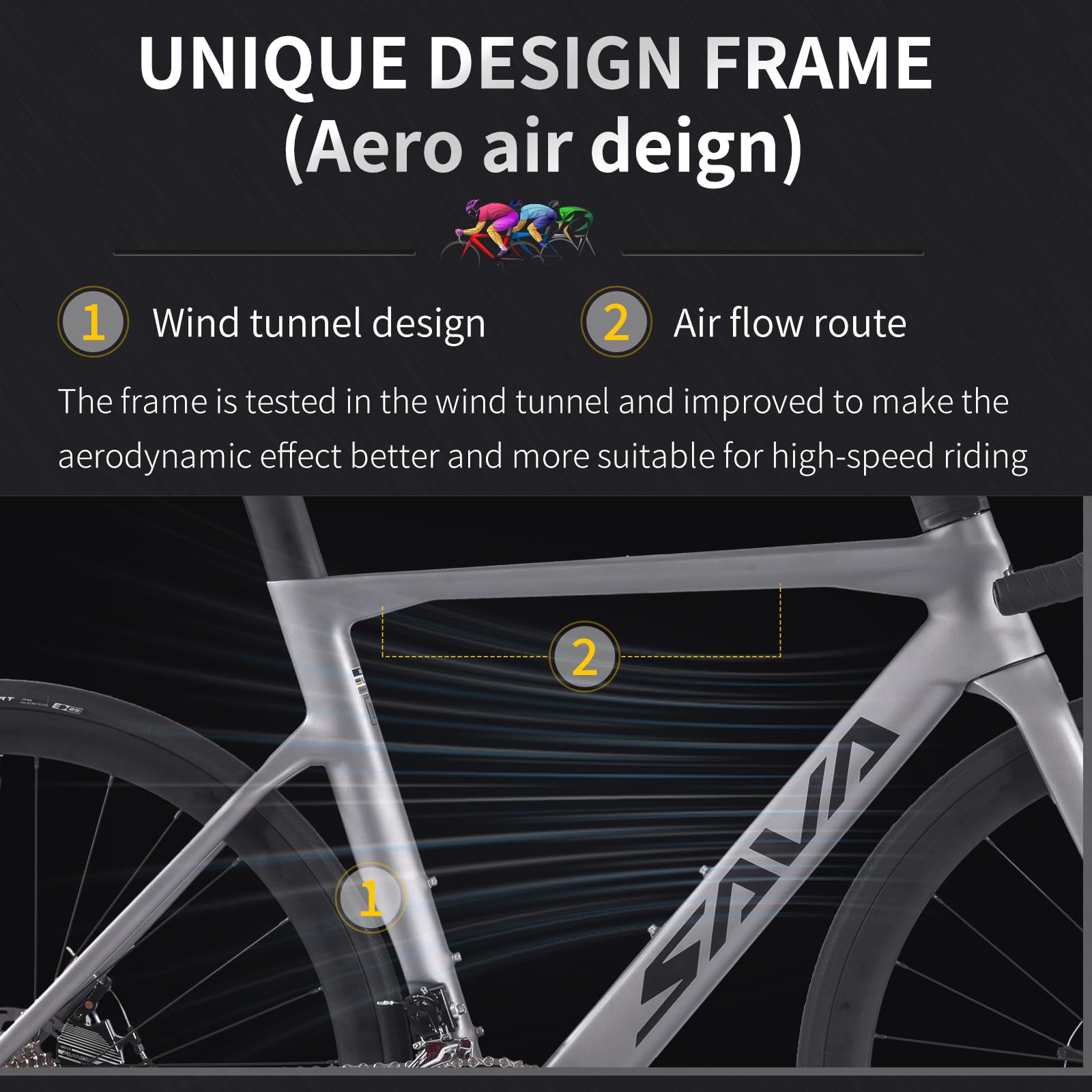- Aerodynamic Design: Internal cable routing and a tapered head tube reduce wind resistance, boosting the bike's speed and efficiency.