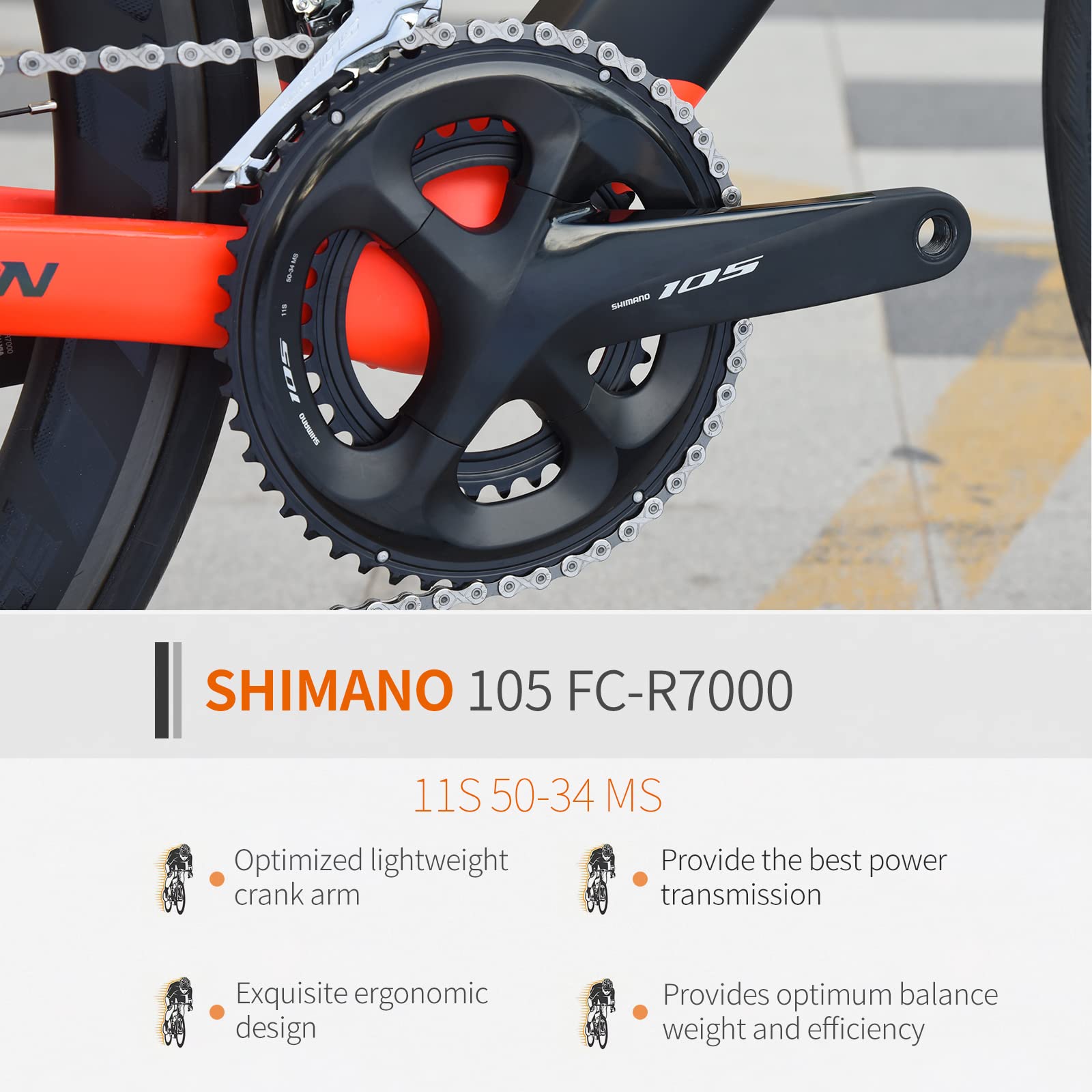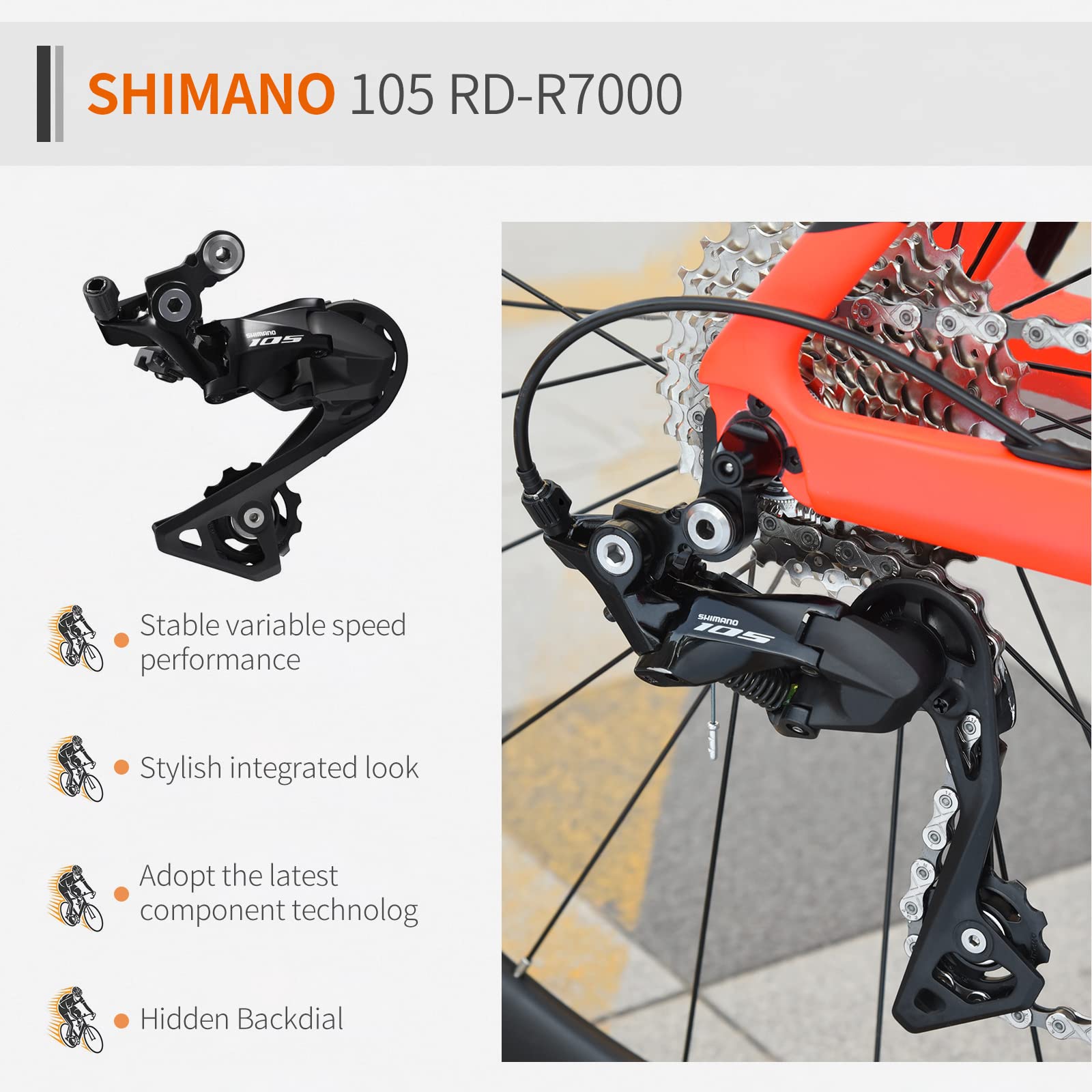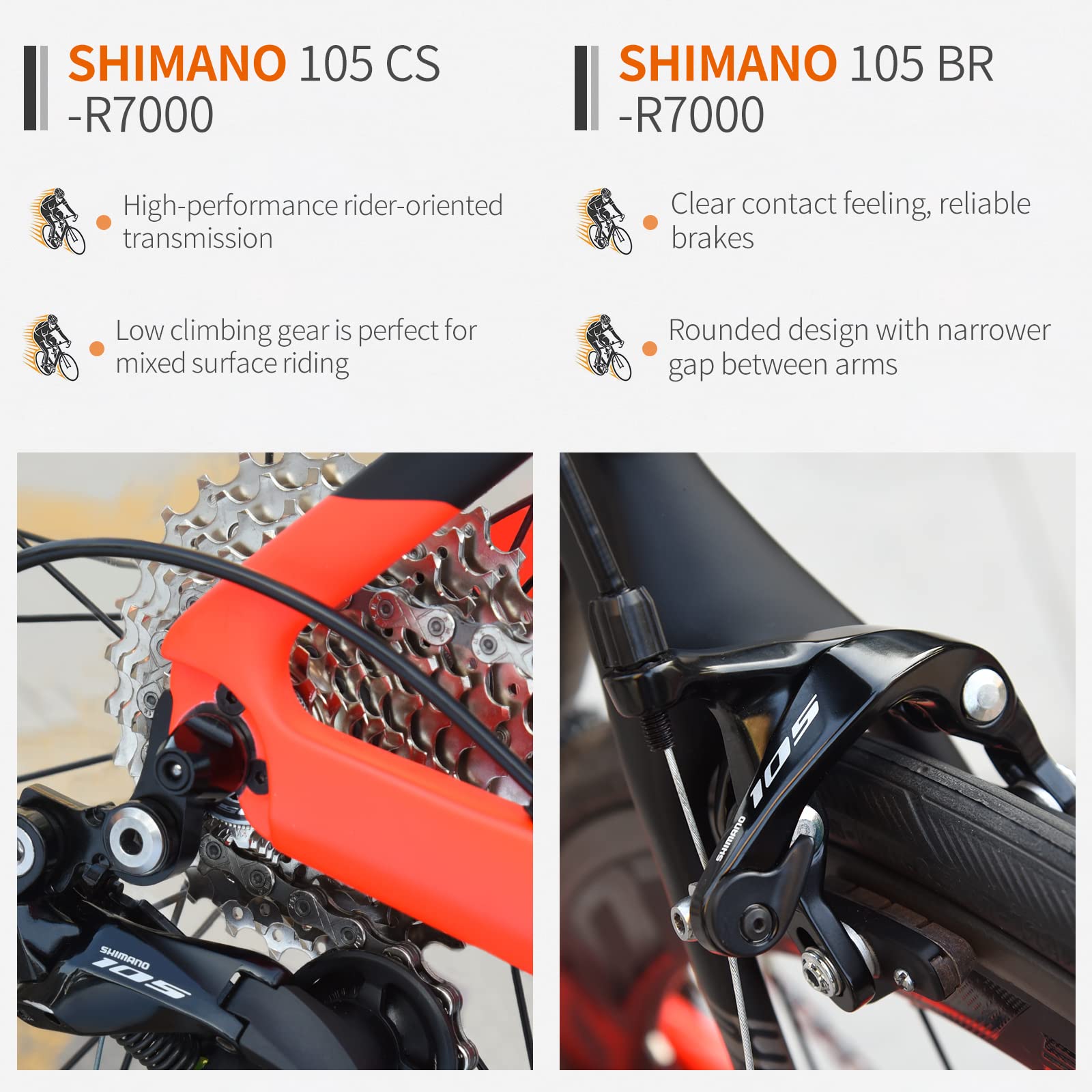 - SHIMANO 105 7000 22-Speed System: The SHIMANO 105 7000 derailleur and brake system deliver precise control for smoother shifting, efficient riding, and reliable braking, ensuring optimal performance in all conditions.