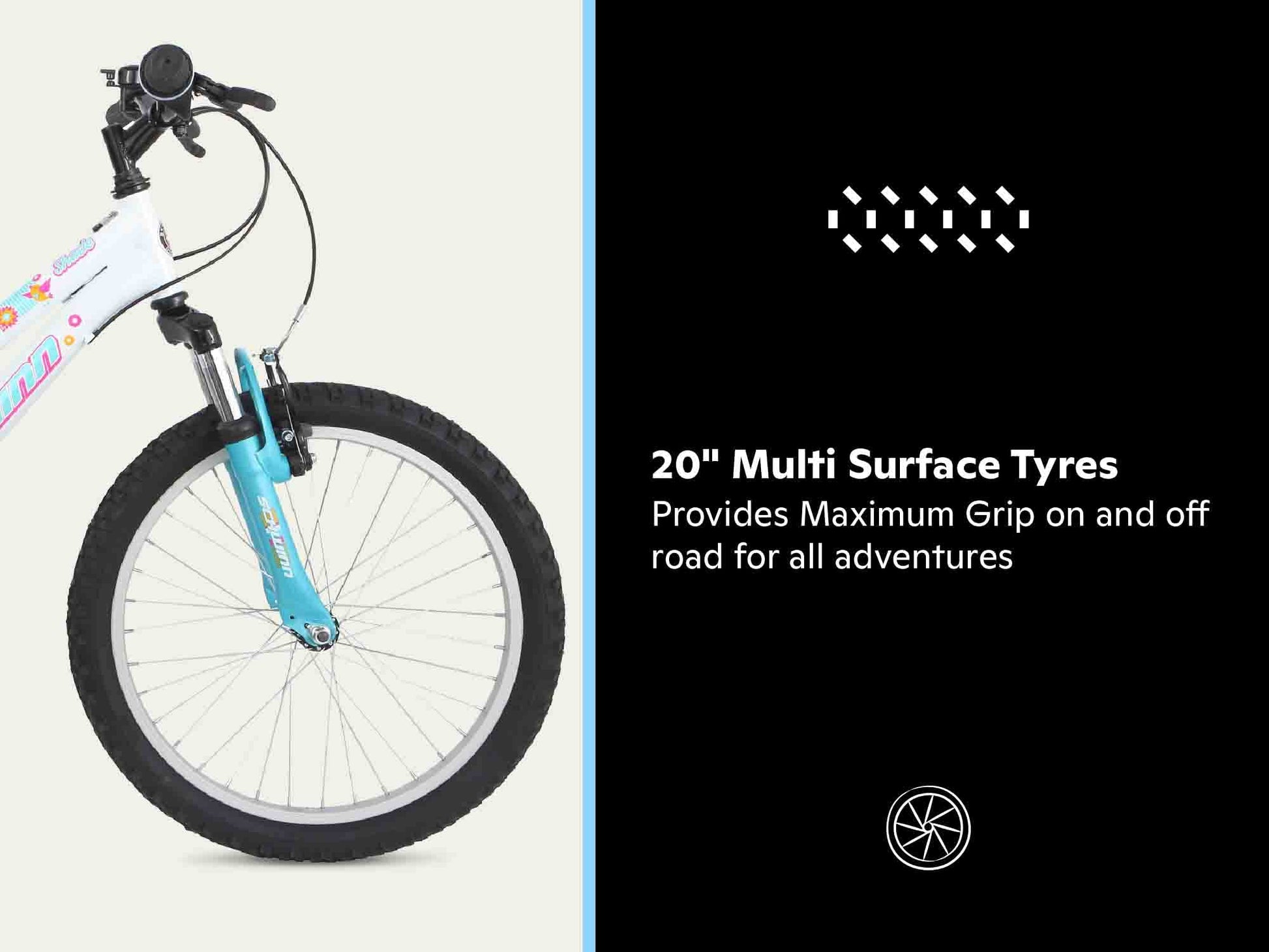 Let your young rider explore with confidence on the Schwinn Shade 20" Girls' Bike. Designed with child-specific geometry, this bike offers the perfect fit for a smooth and enjoyable ride. With versatile tyres, easy-to-use gears, and reliable brakes, it's the ideal companion for on-road and off-road adventures, whether it’s a neighborhood ride or a park excursion.