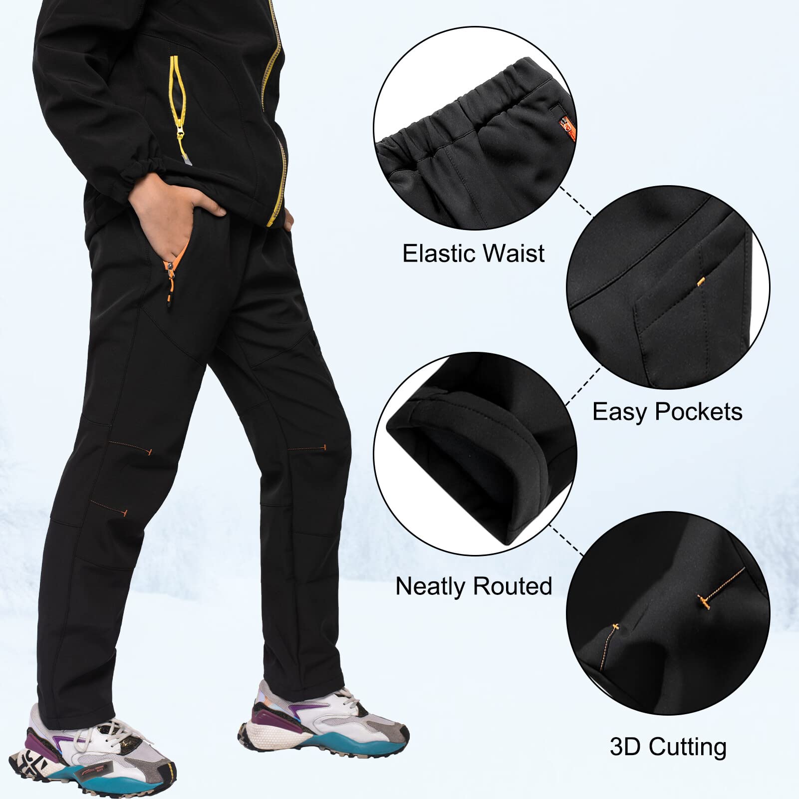 - SEAUR Kids Hiking Trousers | Waterproof Winter Trousers with Zip-up Side Pockets -