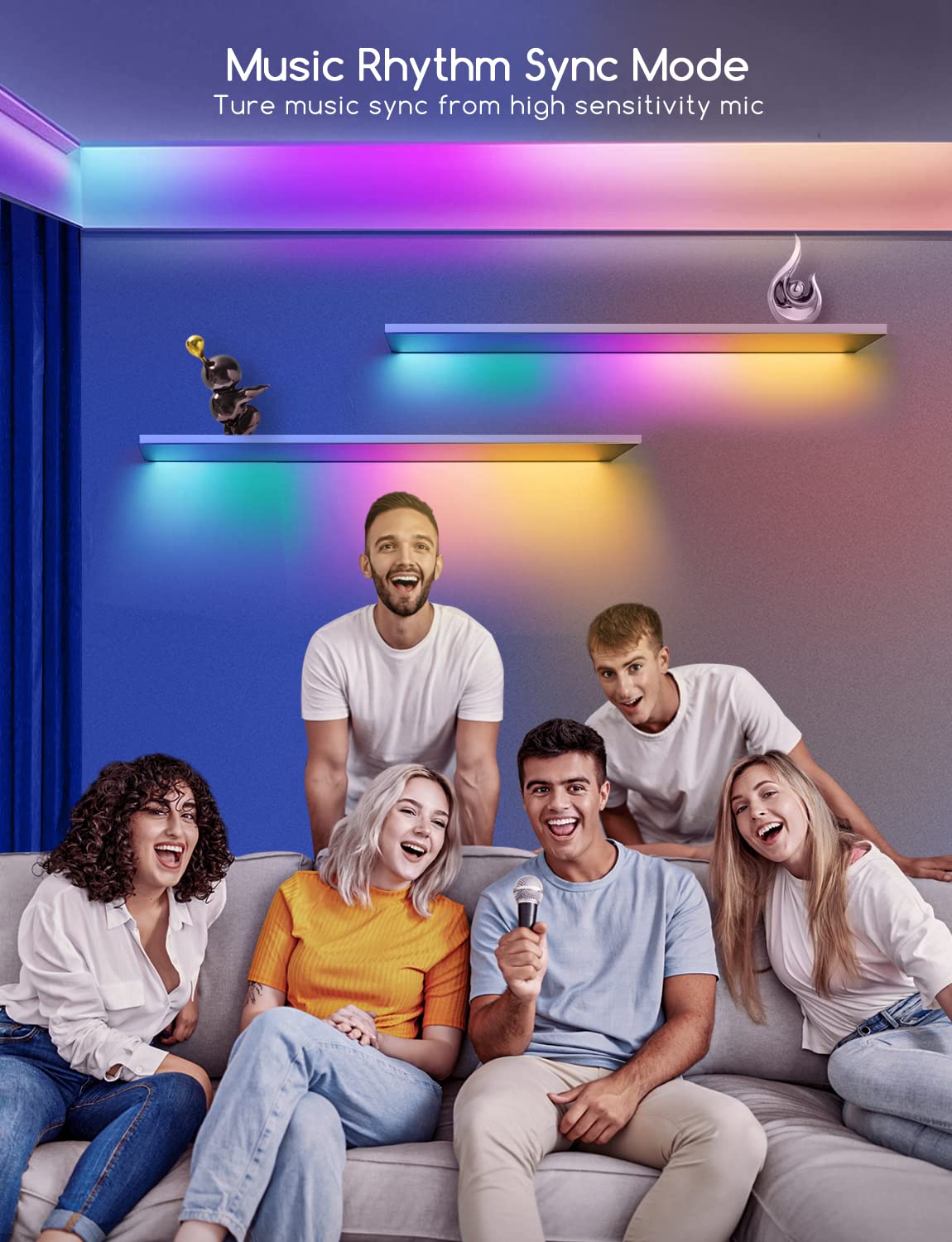 - Music Sync Mode – High-sensitivity mic syncs LED lights to music, making them dance with sound.