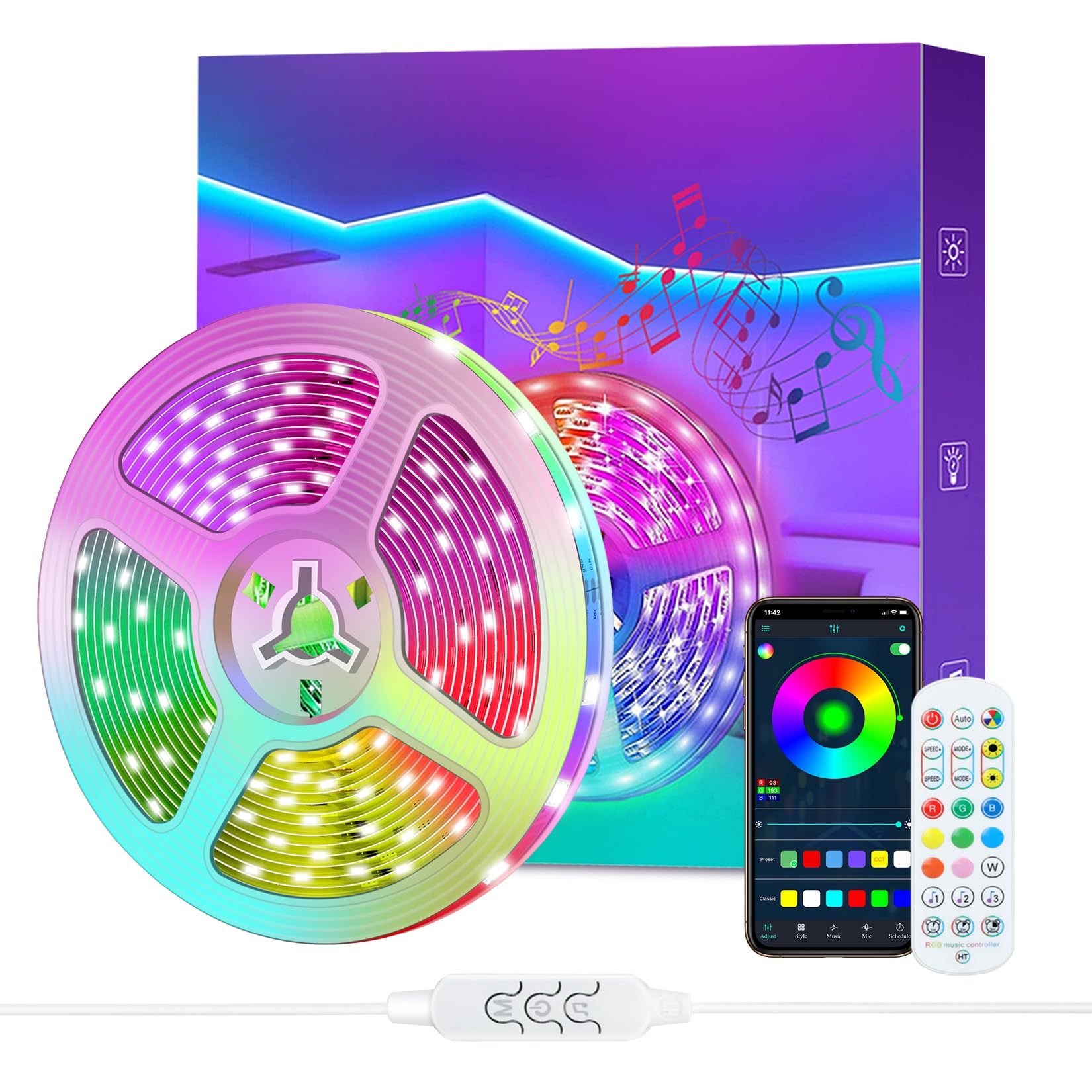 - Led Strip Lights with Remote and APP Control | 10m Lights | RGB Using IC Chips Control Rainbow Colour -