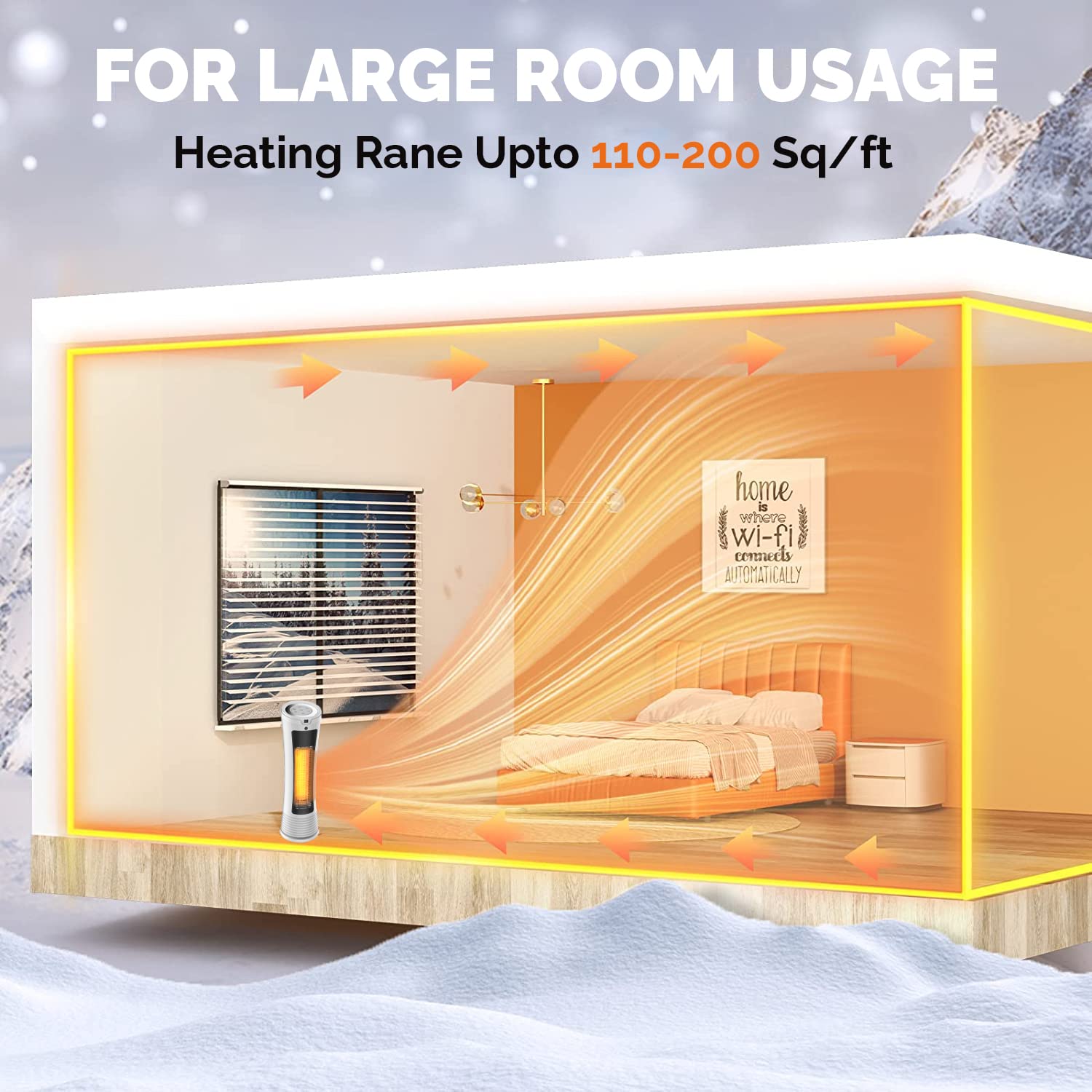 - 90° Oscillation and 8-Hour Timer: With the 90° oscillation feature, the heater evenly distributes heat throughout the room. The 8-hour timer allows for customizable operation, helping to save energy and ensure the room is warm when needed.