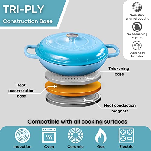 - Shallow Cast Iron Casserole with Lid | Non Stick Dutch Oven Pot | Oven Safe -