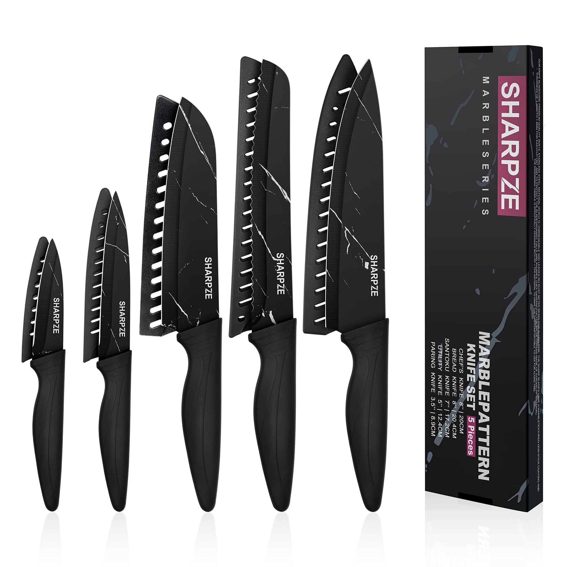 - Kitchen Knife Set of 5 | Ultra Sharp Stainless Steel Blade I Kitchen Knives with Ergonomic Handle & Sheaths Include Paring -