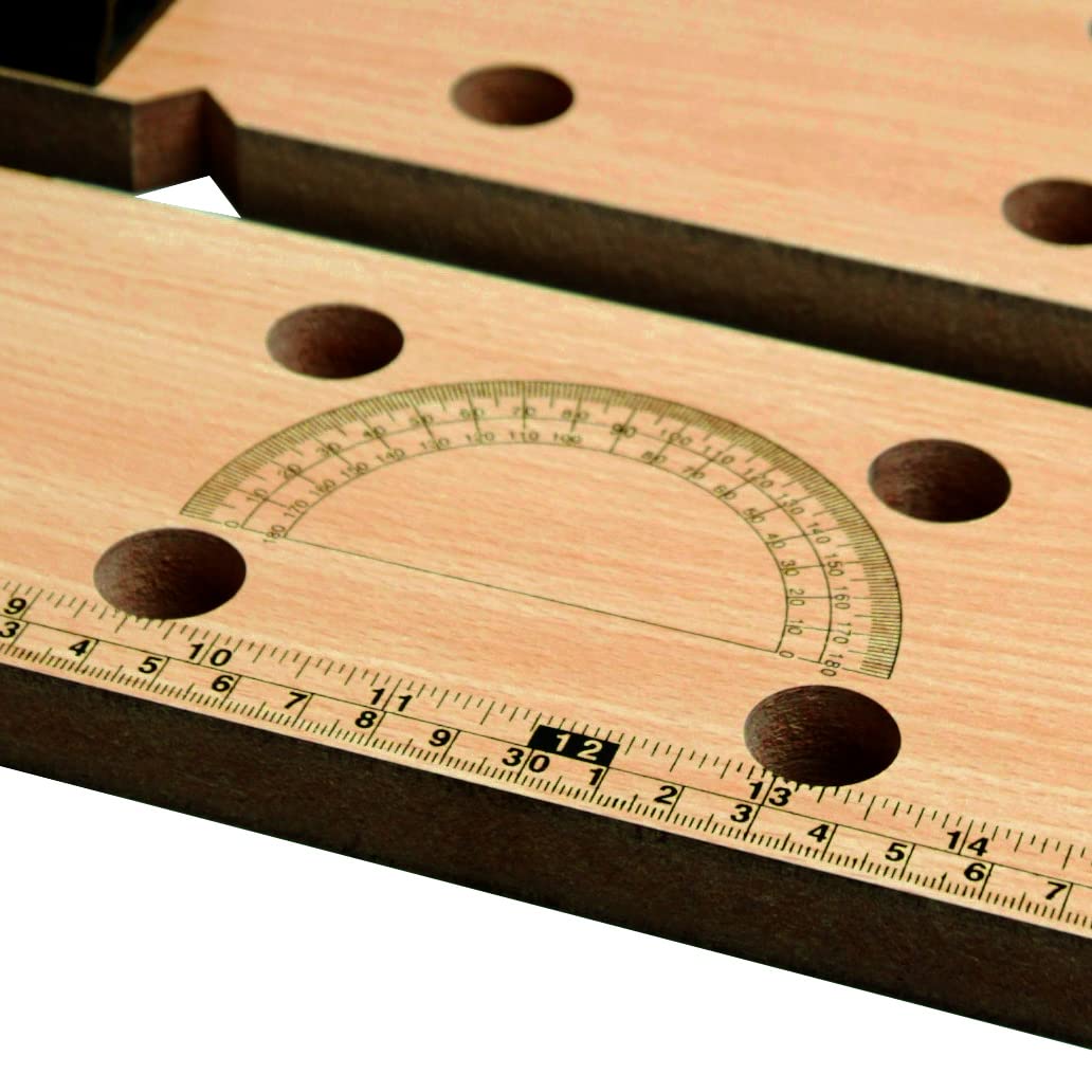 - Protective Feet and Rubber Blocks: The plastic feet protect surfaces from scratches, while the movable rubber blocks keep workpieces secure on the worktop.