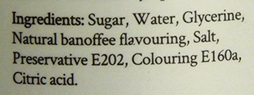- Ingredients: Sugar, Water, Glycerine, Natural Banoffee Flavouring, Salt, E202 (Preservative), E160a (Coloring), Citric Acid