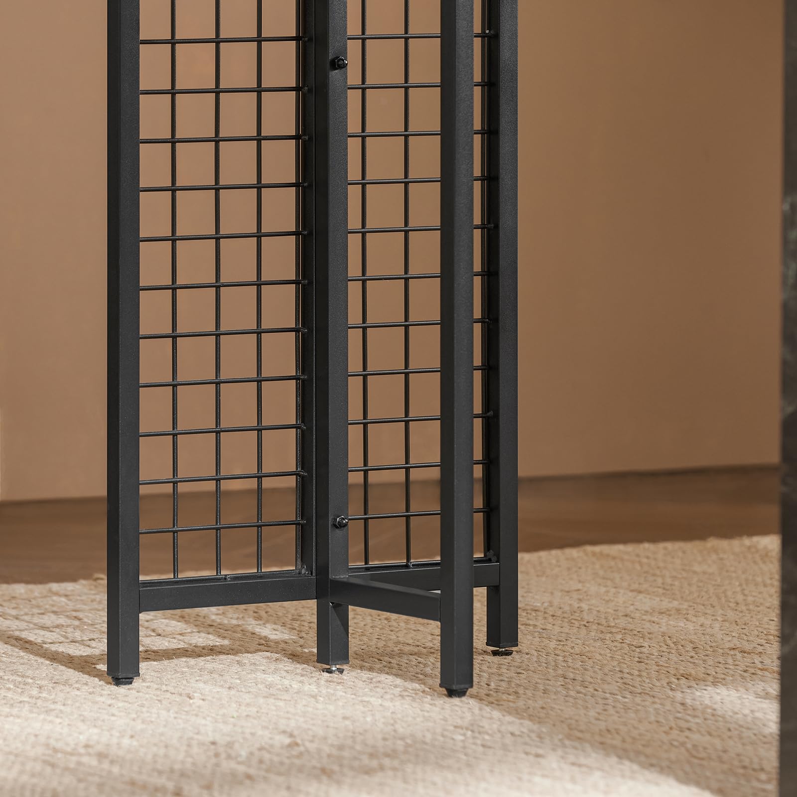 - Modern Design: The black marble-effect MDF surface and powder-coated steel frame with a metal mesh side design create a contemporary, eye-catching piece that fits well in any space.