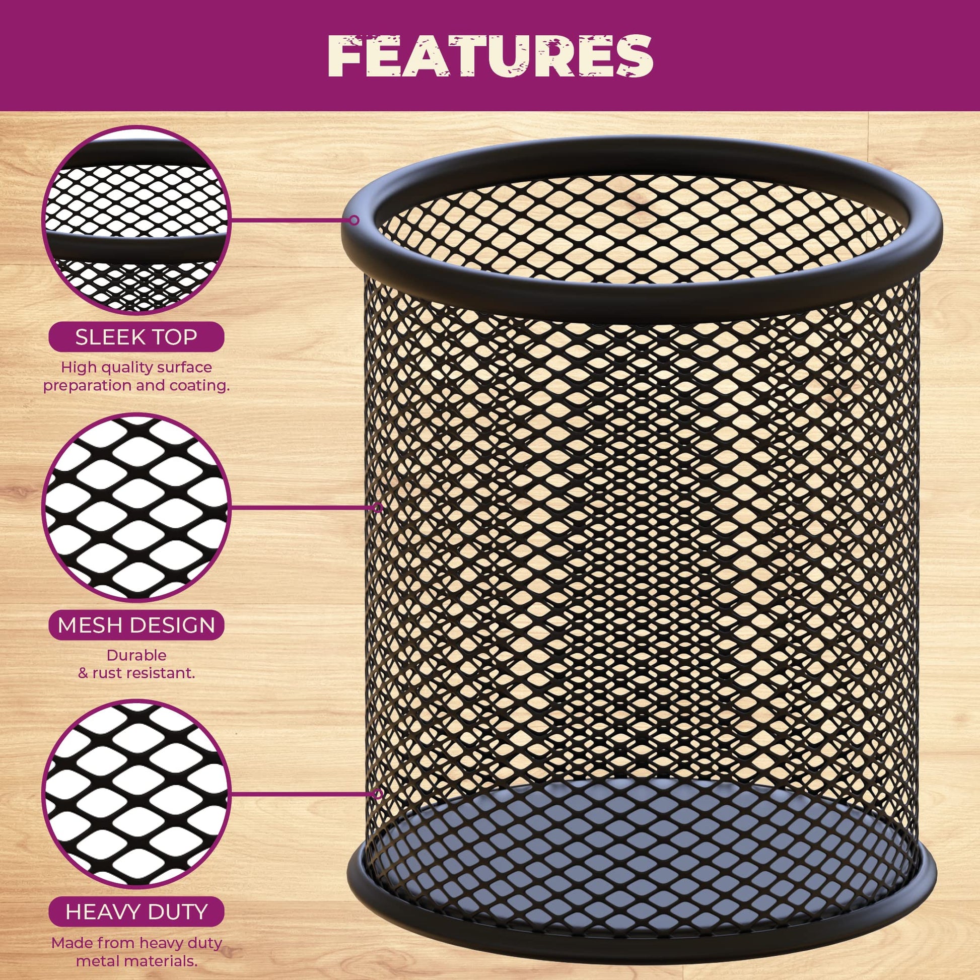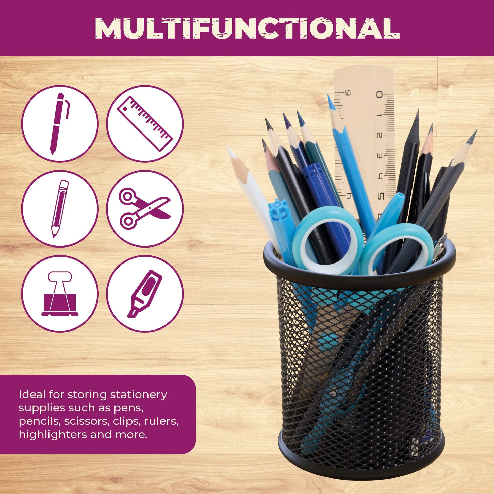 - 2-Pack of Mesh Pencil Holders: Convenient set of two pen pots that provide ample space for pens, pencils, markers, scissors, and more.