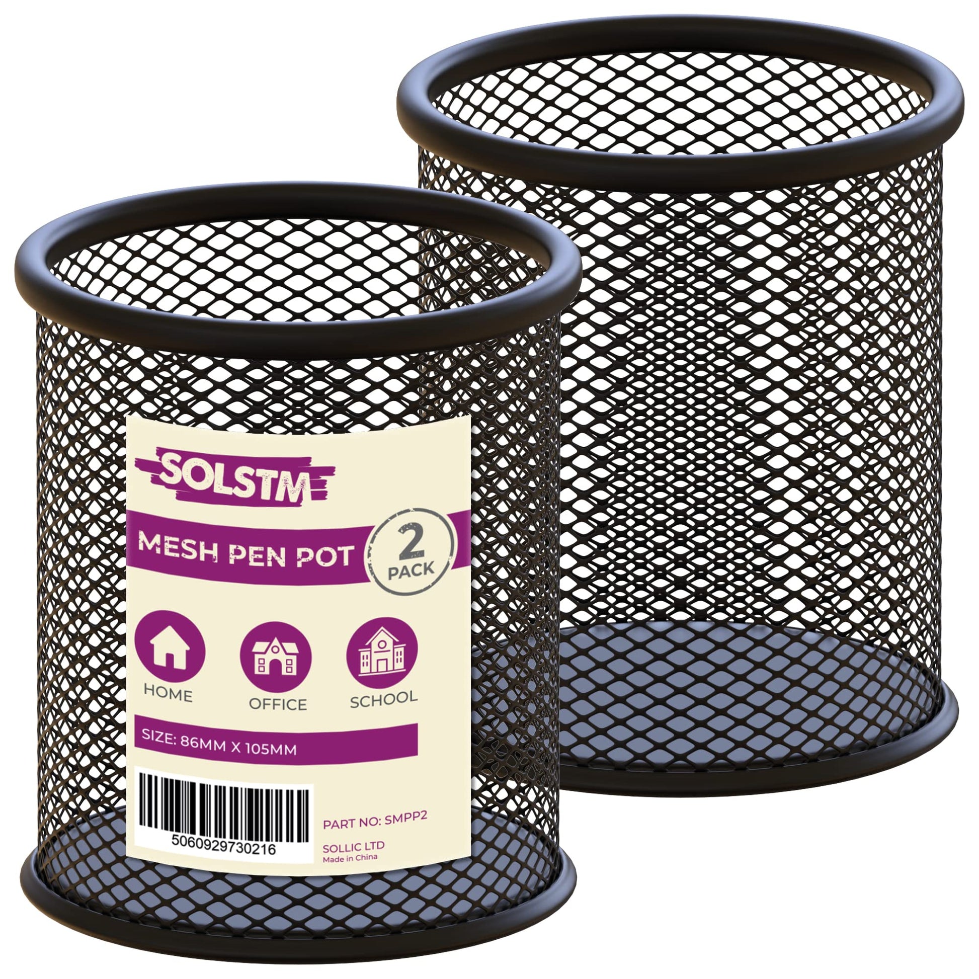 - SOLSTM Mesh Pen Holder for Desk | 2 PCS Black Mesh Pen Pot -