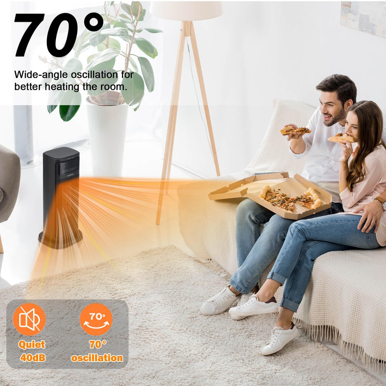 - Oscillation & Remote Control: Enjoy 90° oscillation that spreads heat across a larger area, and control the heater remotely from up to 16.4 ft away for ultimate convenience.