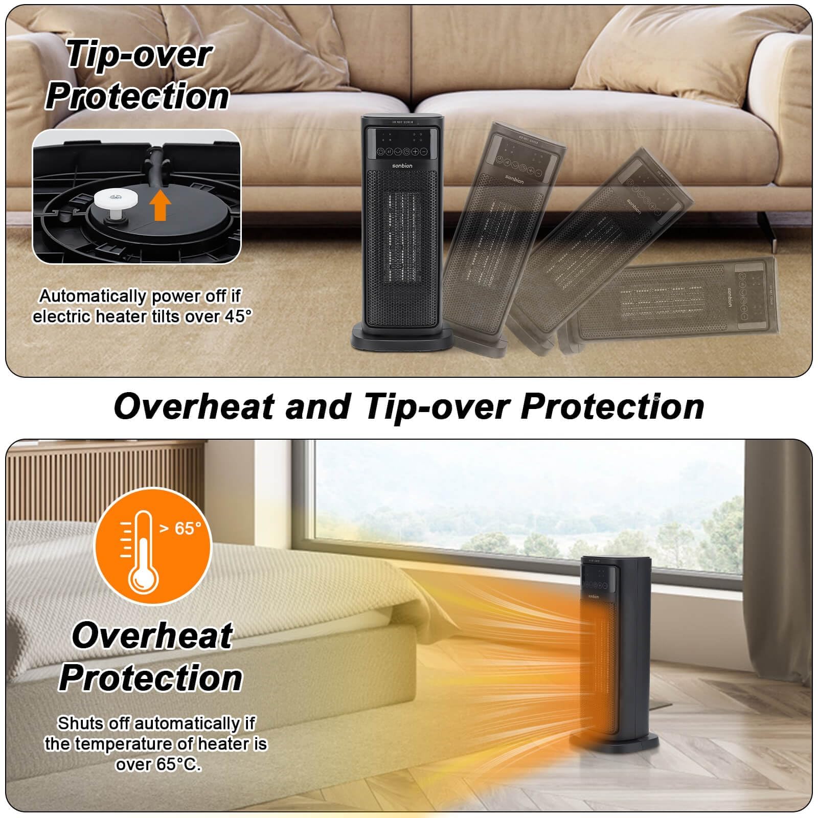 - Multiple Safety Features: Made from V0-rated flame-retardant materials, this heater includes 360° safety features like tip-over and overheat protection for added peace of mind.