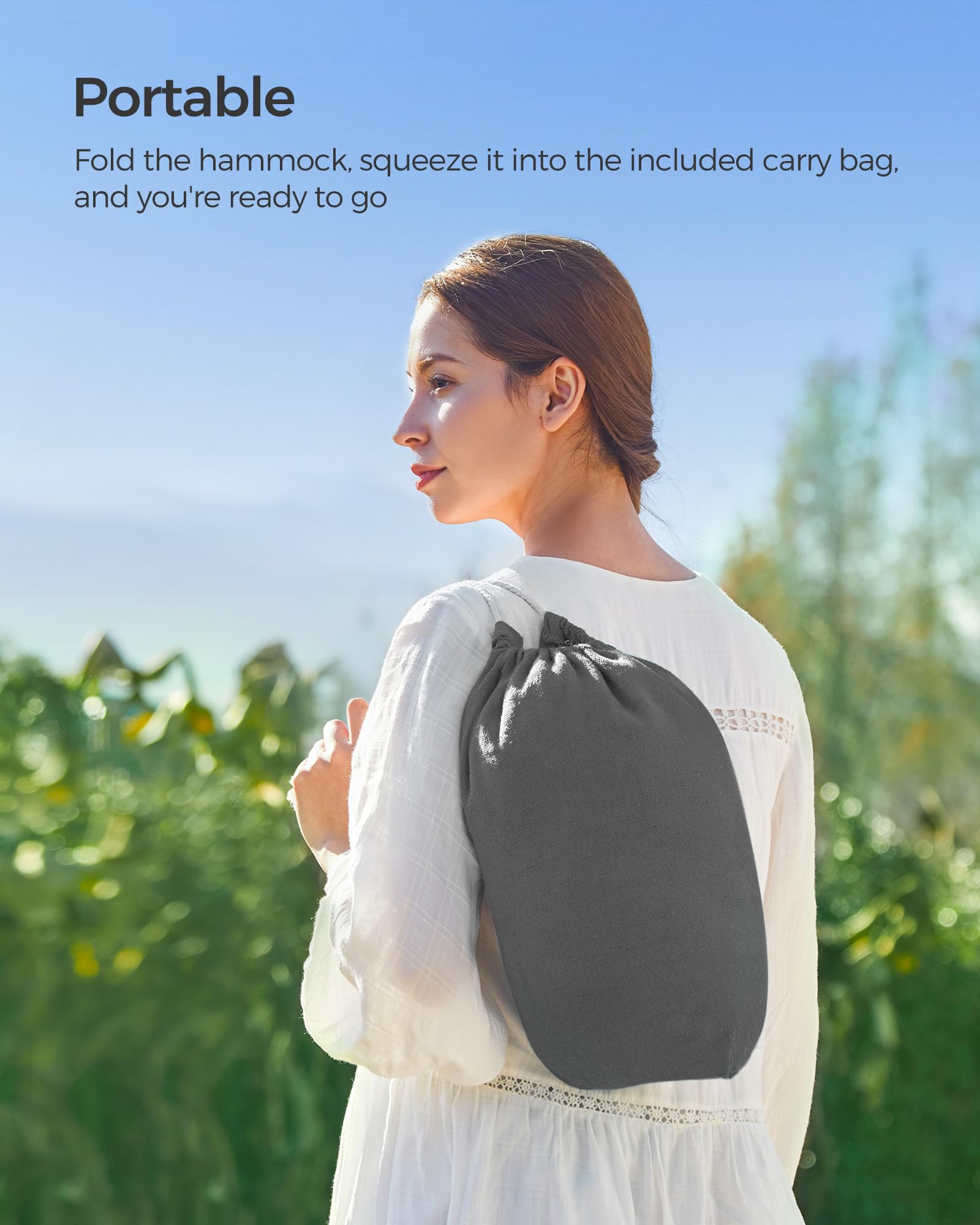 - Unmatched Comfort: Crafted from a breathable cotton-polyester blend, this hammock offers a soft and durable surface that feels great against your skin.