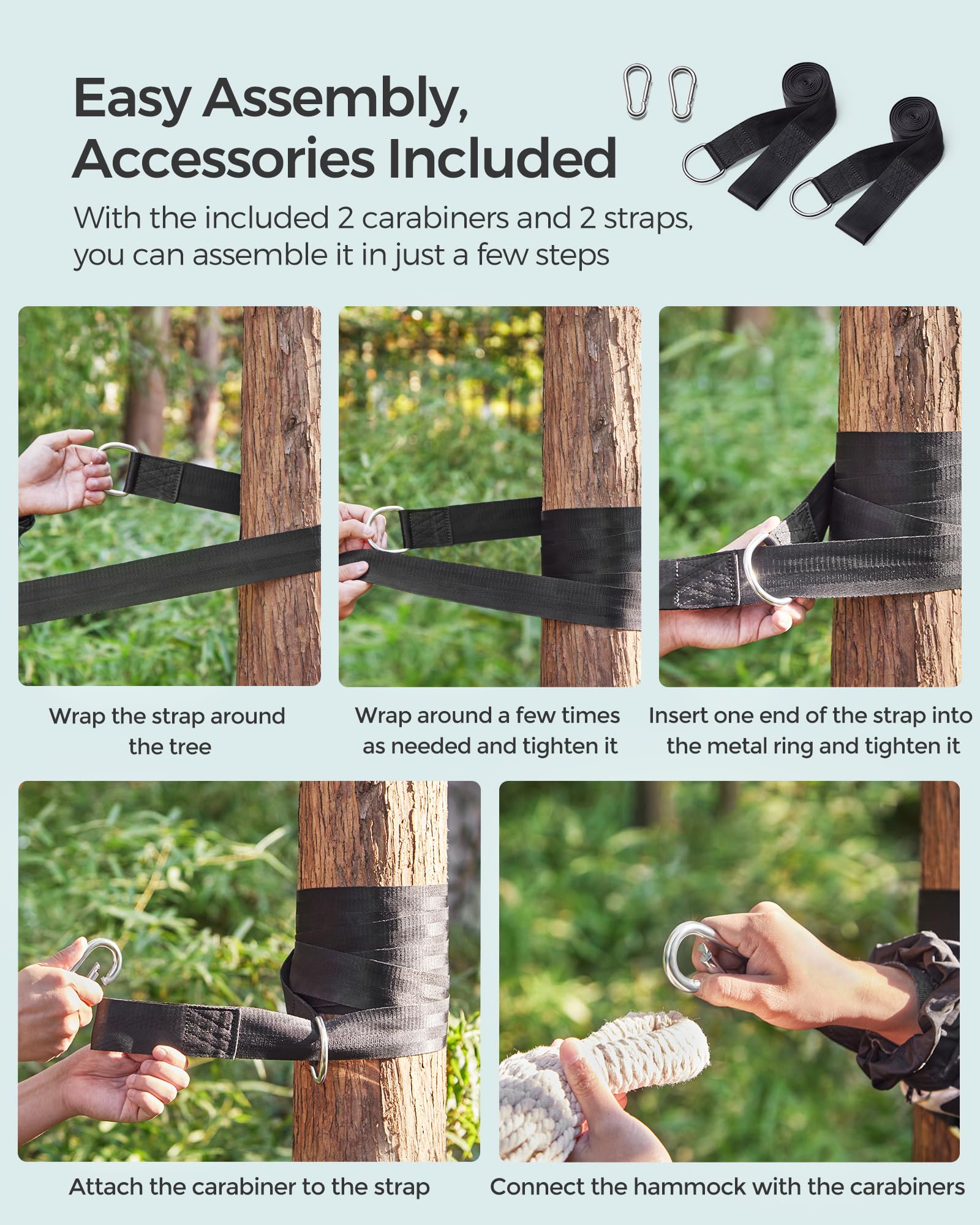 - Easy Setup Anywhere: Comes with two mounting straps and carabiners, making it simple to hang between trees or secure on a stand.