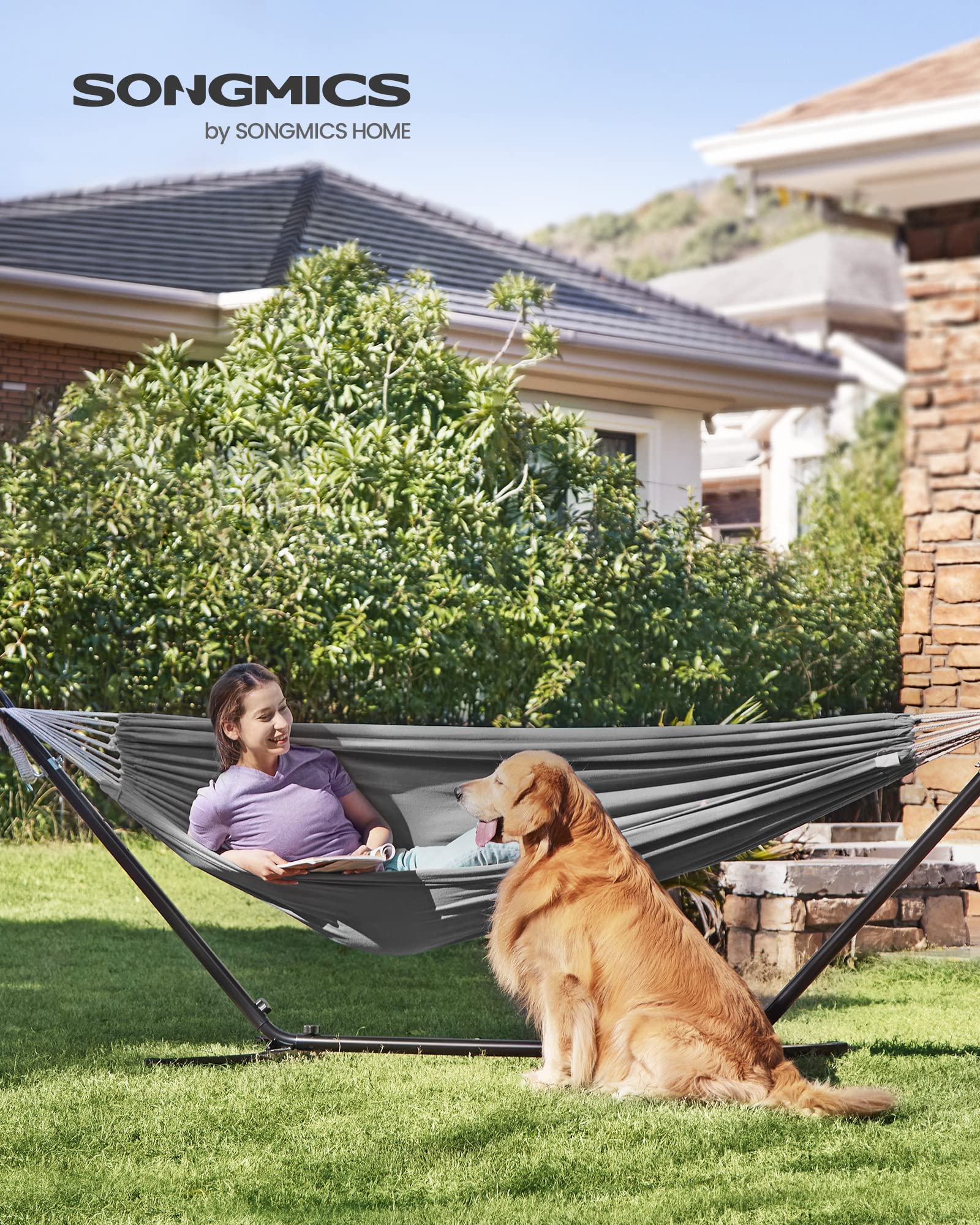 - SONGMICS Hammock | 210 x 150 cm | Double Hammock | 300 kg Load Capacity | For Terrace, Garden, Outdoor, Camping | Complete With Carry Bag | Grey GDC15GY -