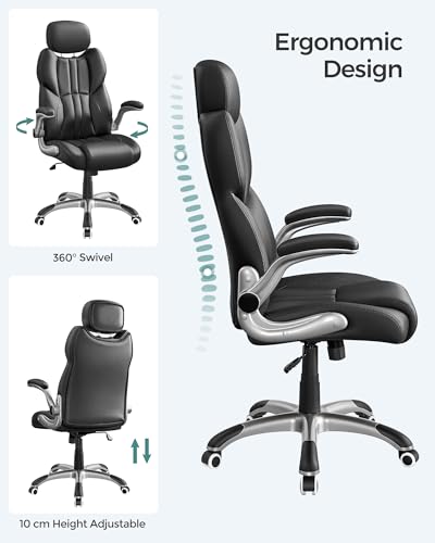 - SONGMICS Office Chair | Ergonomic Gaming Chair With Adjustable Headrest | Tilt Function | Foldable Armrests | Adjustable Height | Ink Black OBG65BKUK -