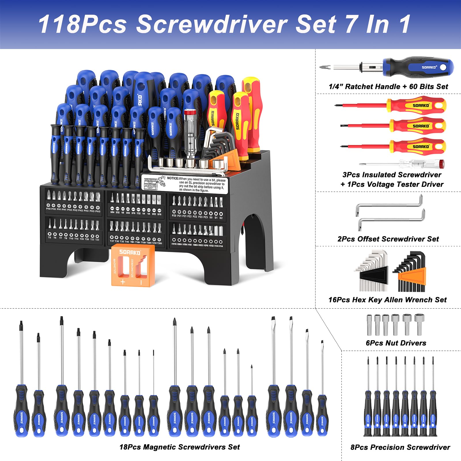 - SORAKO 118Pcs Screwdriver Set Magnetic | Including Ratchet Screwdriver -