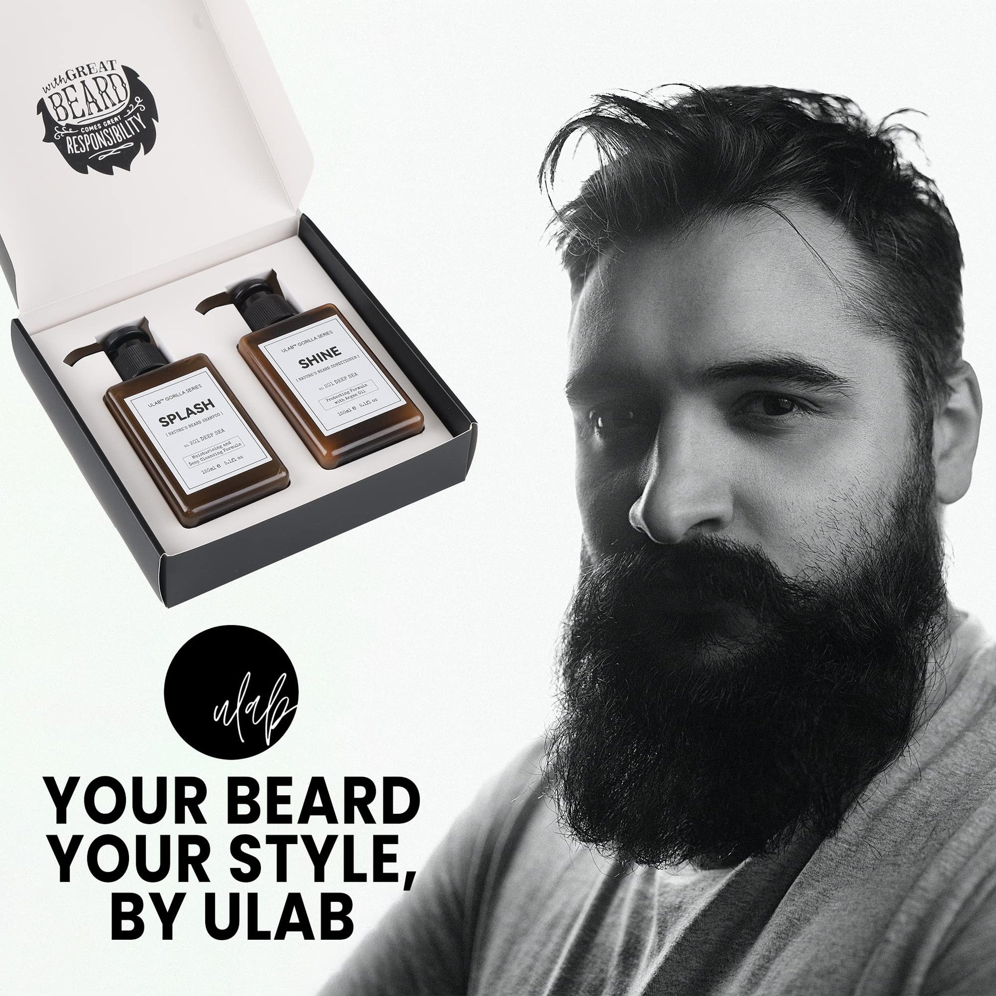 uLab Beard Shampoo & Conditioner Set | Deep Sea Beard Wash & Softener for Men