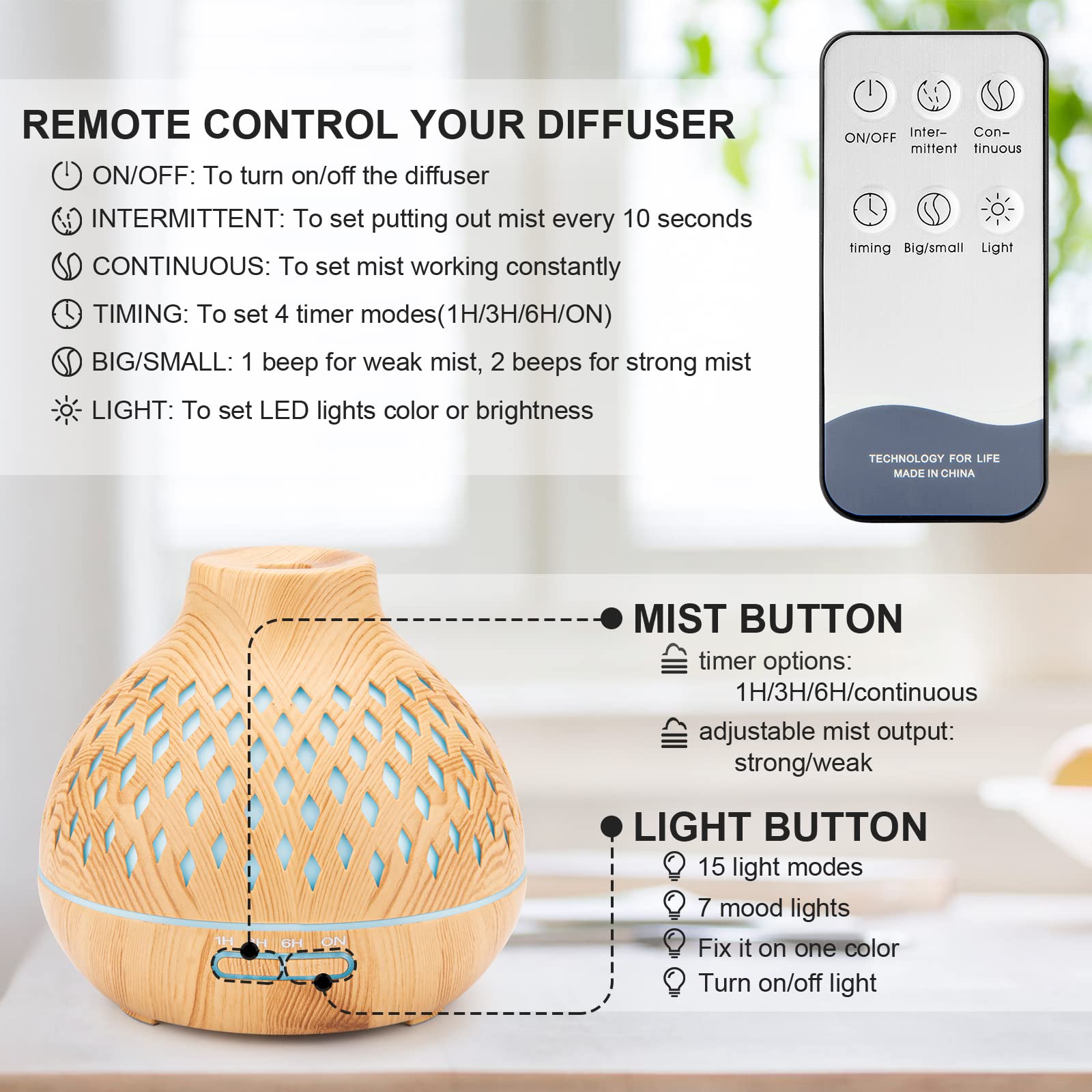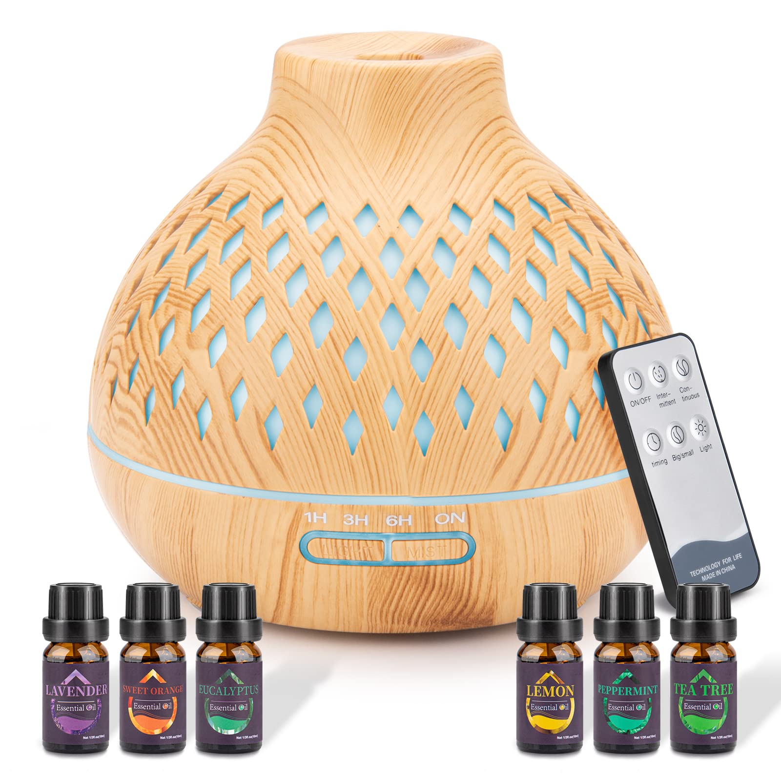 - SPLITSKY 400ML Essential Oil Diffuser | Remote Control Aroma Diffuser | 6 Essential Oils Gift Set -