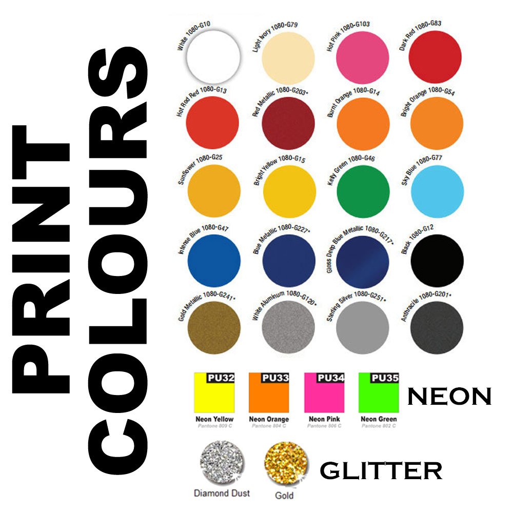 - Pre-Set Print Colors: If you don’t specify, the print will be in white on dark colors and black on light colors.