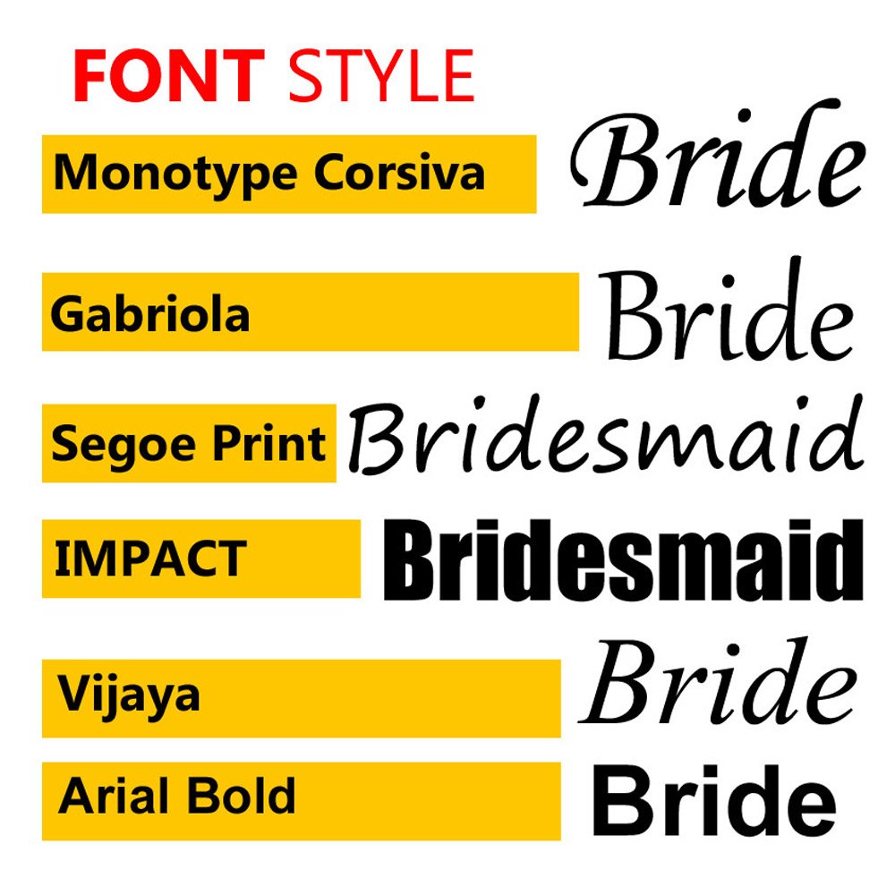 - Custom Color and Font Options: Choose the print color and let us know if you'd like a different font from the default Arial bold.