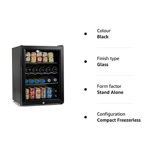 - Features: LED Light, Adjustable Chrome Wire Shelves, Security Lock & Key, Reversible Glass Door, Energy A++ Rated